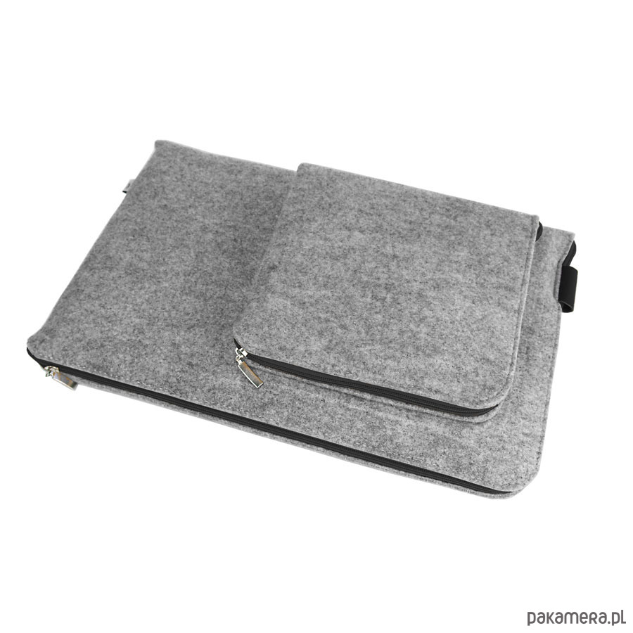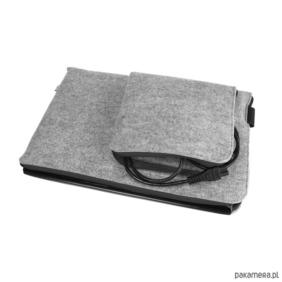 Pokrowiec z filcu na laptopa / tablet z naszytą dodatkową kieszonką na zasilacz.