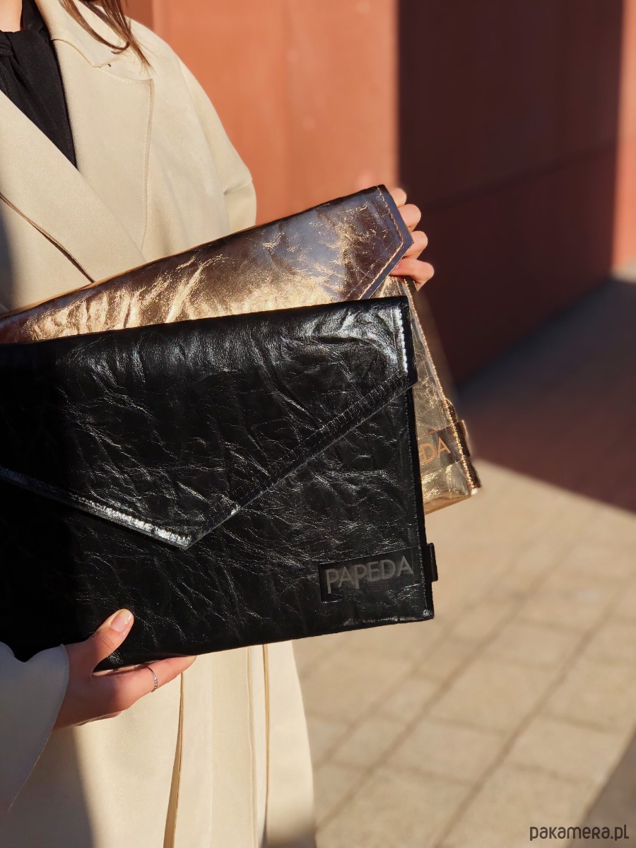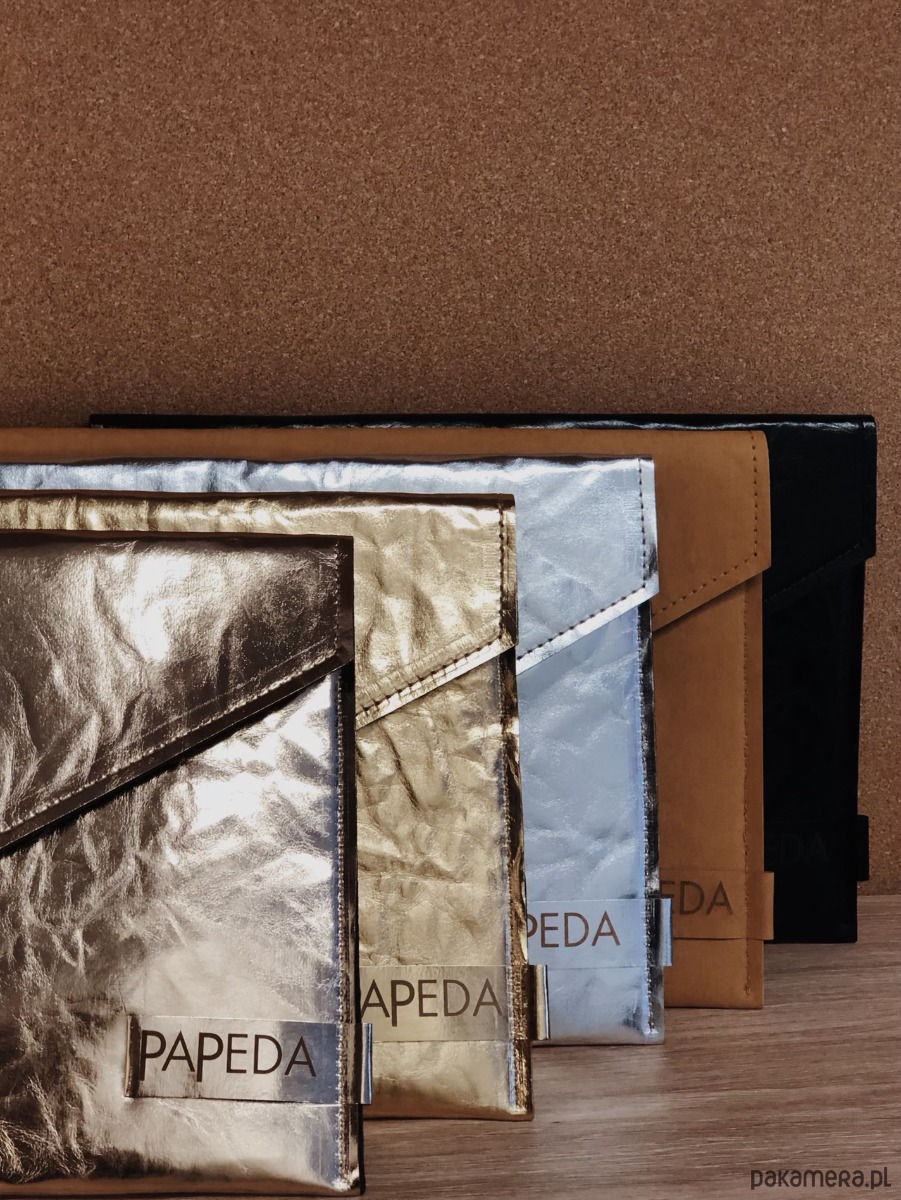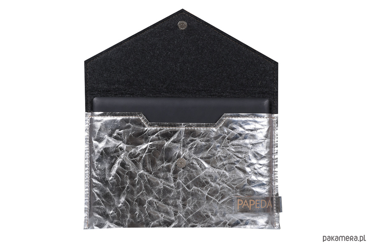 Ochronne i wygodne Teczka/Etui PAPEDA na notebooka,tableta lub dokumenty doskonale chroni dzięki wnętrzu wyściełanemu miękkim filcem. Mieści notebooka lub tablet o wymiarach 13 cali oraz format A4. Tak zabezpieczony sprzęt może być przewożony np. w torbie podróżnej. Etui świetnie się również prezentuje. Jest gustowne, szykowne i eleganckie. Orginalności z czasem dodadzą papierowi przetarcia, powstające w naturalny sposób w miejscach zagniecenia. Dostępne w pięciu kolorach. Wymiary produktu: Szerokość zewnętrzna: 37,5 cm Szerokość wewnętrzna: 35,5 cm Wysokość: 26 cm