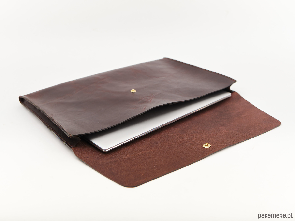 Etui na laptopa 13', uszyte z jednego kawałka skóry.