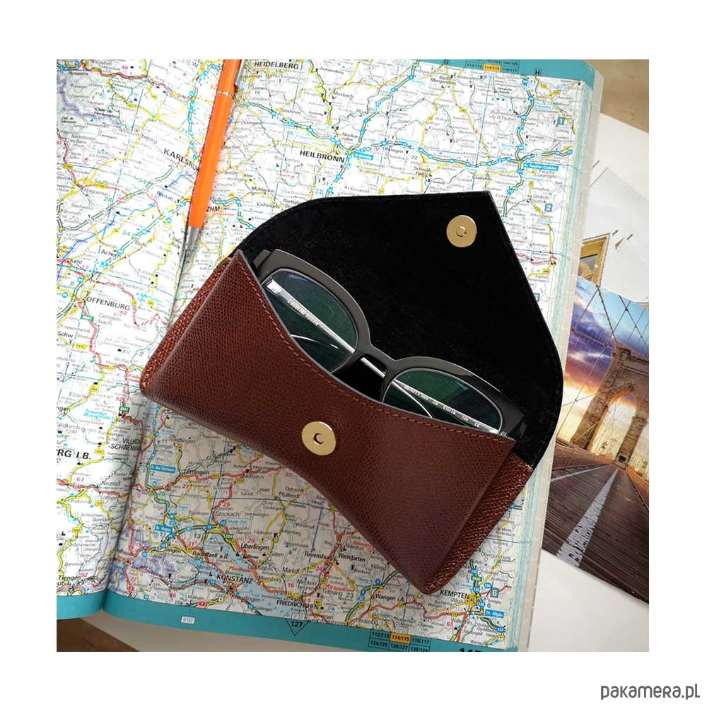 Etui wykonane z włoskiej skóry naturalnej wysokiej jakości. Dzięki wszytej specjalistycznej piance okulary są zabezpieczone przed porysowaniem i uszkodzeniem. Dodatkowo wnętrze wykończone naturalnym zamszem - jest bezpieczne dla szkła okularów i nie będzie powodować zarysowań. Etui zapinane na magnes. Z tyłu w skórze wytłoczone logo marki SHELEST.