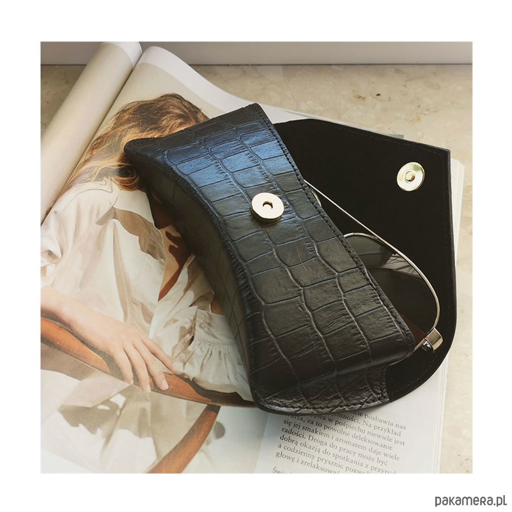 Etui wykonane z włoskiej skóry naturalnej wysokiej jakości. Dzięki wszytej specjalistycznej piance okulary są zabezpieczone przed porysowaniem i uszkodzeniem. Dodatkowo wnętrze wykończone naturalnym zamszem - jest bezpieczne dla szkła okularów i nie będzie powodować zarysowań. Etui zapinane na magnes. Z tyłu w skórze wytłoczone logo marki SHELEST.
