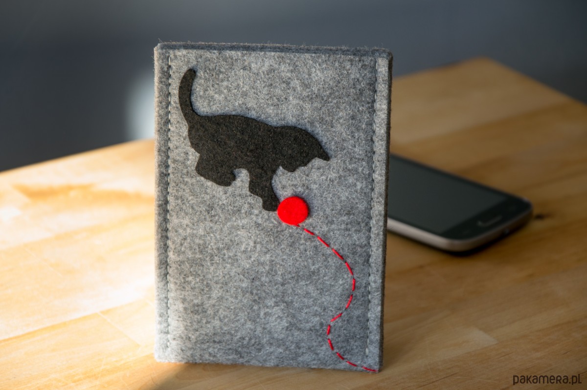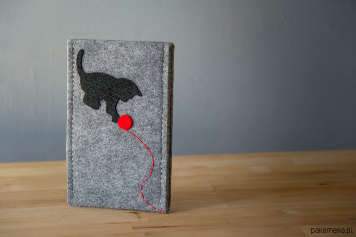 etui filcowe KOT Z KŁĘBKIEM WEŁNY * Pokrowiec zostanie wykrojony zgodnie ze specyfikacją techniczną wskazanego modelu telefonu. * Etui wykonane z grubego szarego filcu oraz aplikacji filcowych - kotek z kłębkiem wełny. Twój telefon chroniony jest przed uderzeniami i zarysowaniami filcem o grubości aż 5mm. Dzięki swojej teksturze i grubości filc jest idealnym materiałem ochraniającym.