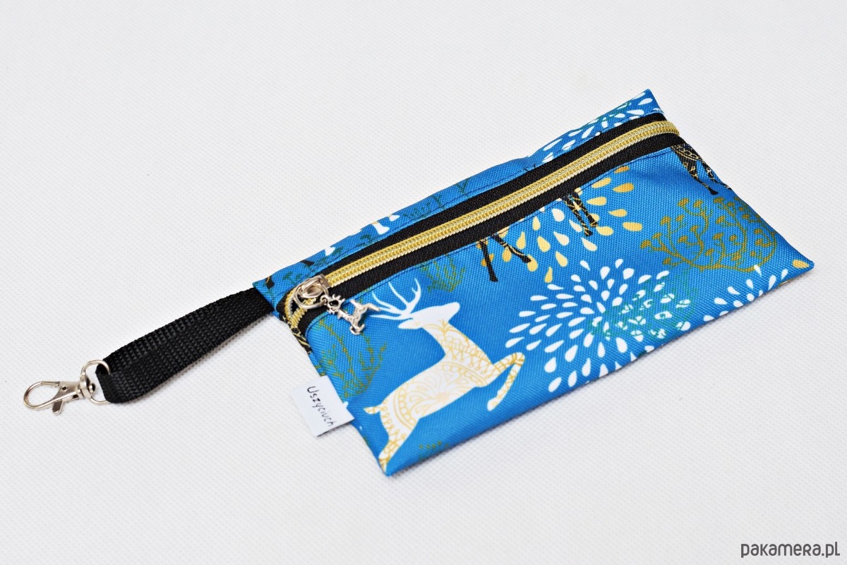 Etui, saszetka na klucze, na telefon lub na drobiazgi uszyte z wodoodpornej tkaniny. Saszetka posiada karabińczyk do którego możesz przyczepić np. klucze i schować je do środka. Sprawdzi się też idealnie jako saszetka do torebki.