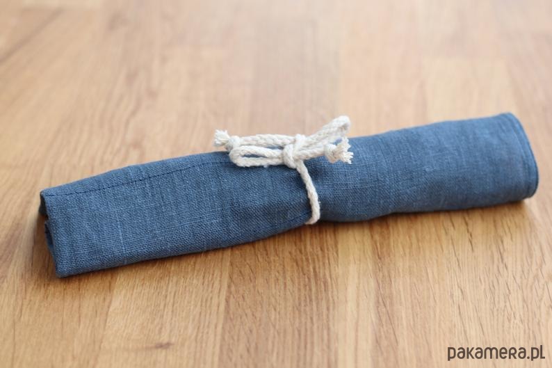 Etui na sztućce, Lniany pokrowiec, zero waste, niebieski