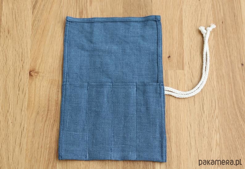 Szczegóły: Etui wykonane z szaroniebieskiego lnu i bawełnianego sznurka