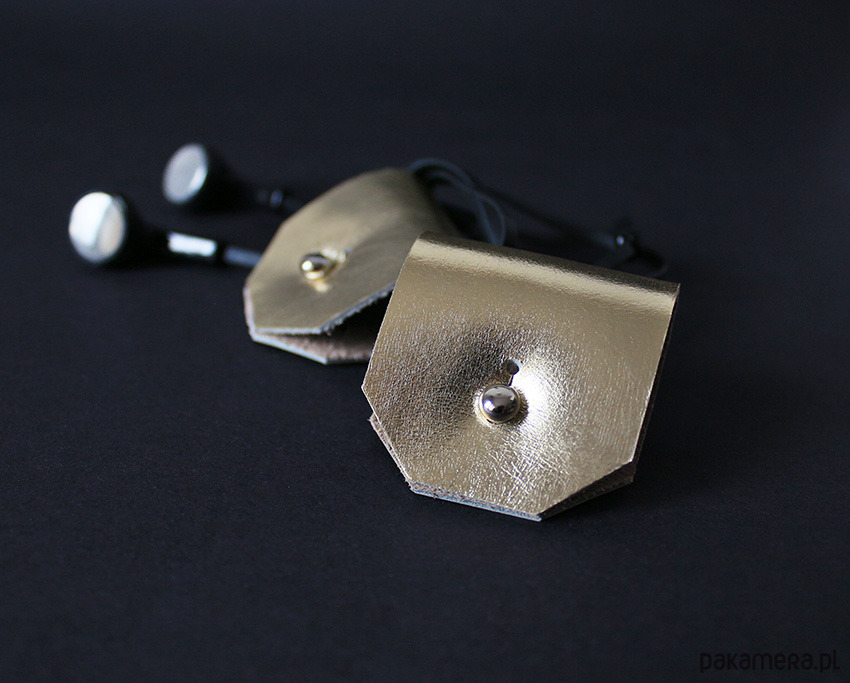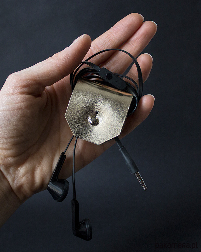 Bardzo przydatny, skórzany poskramiacz/organizer do słuchawek i kabli.