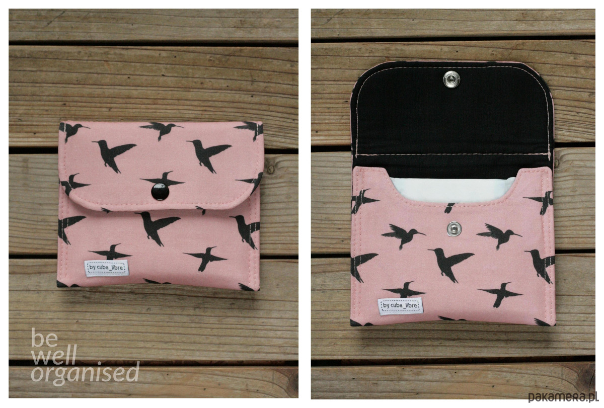 Sekretne etui na art. higieniczne do torebki :). Pomieści 2-3szt podpasek. Etui zapinane na zatrzask. Uszyte z bawełny, cienkiej ociepliny, lekko usztywnione.