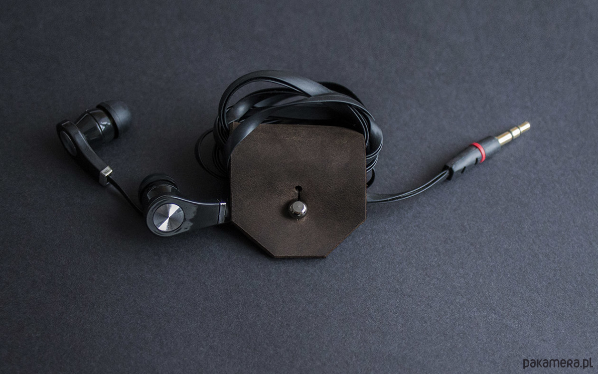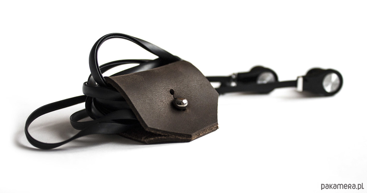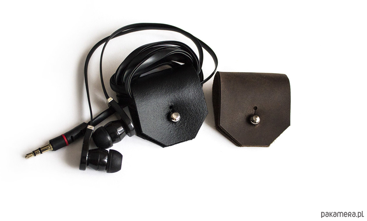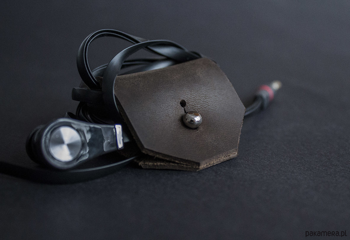 Bardzo przydatny, skórzany poskramiacz/organizer do słuchawek i kabli.