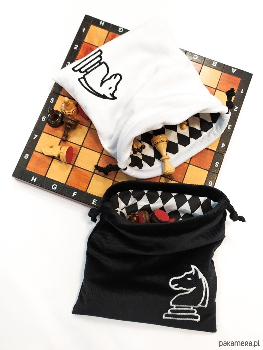 Worek na figury szachowe to świetny pomysł na prezent dla graczy. Woreczki umilą niejeden turniej, sprawią, że skupimy się na ważnych sprawach zamiast na sortowaniu kolorów figur.