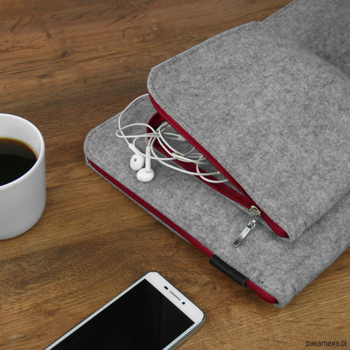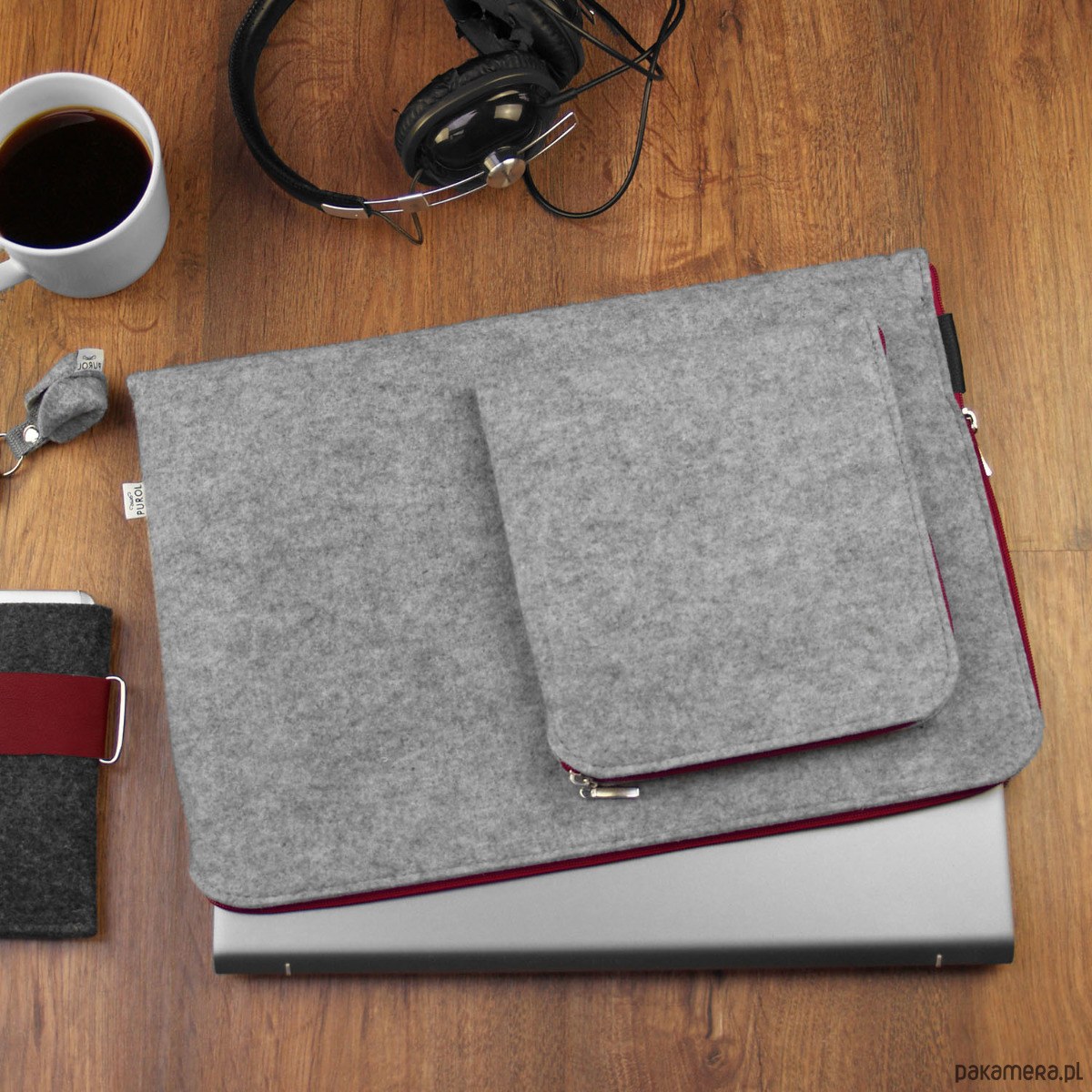 Ręcznie wykonane etui - koperta zapinana na bordowy zamek.