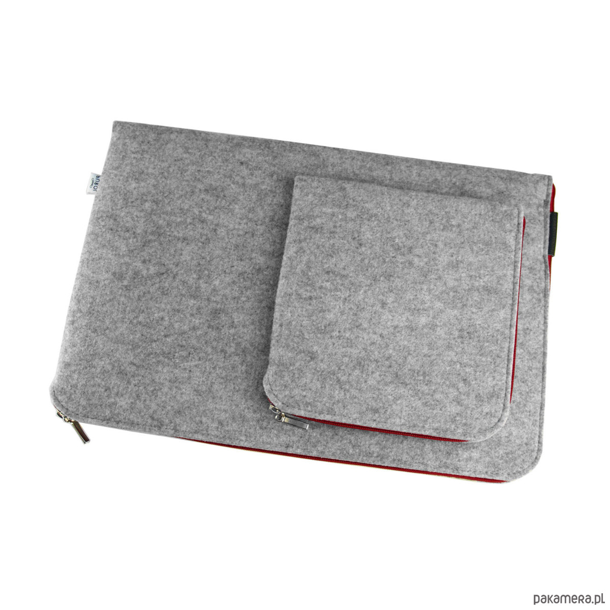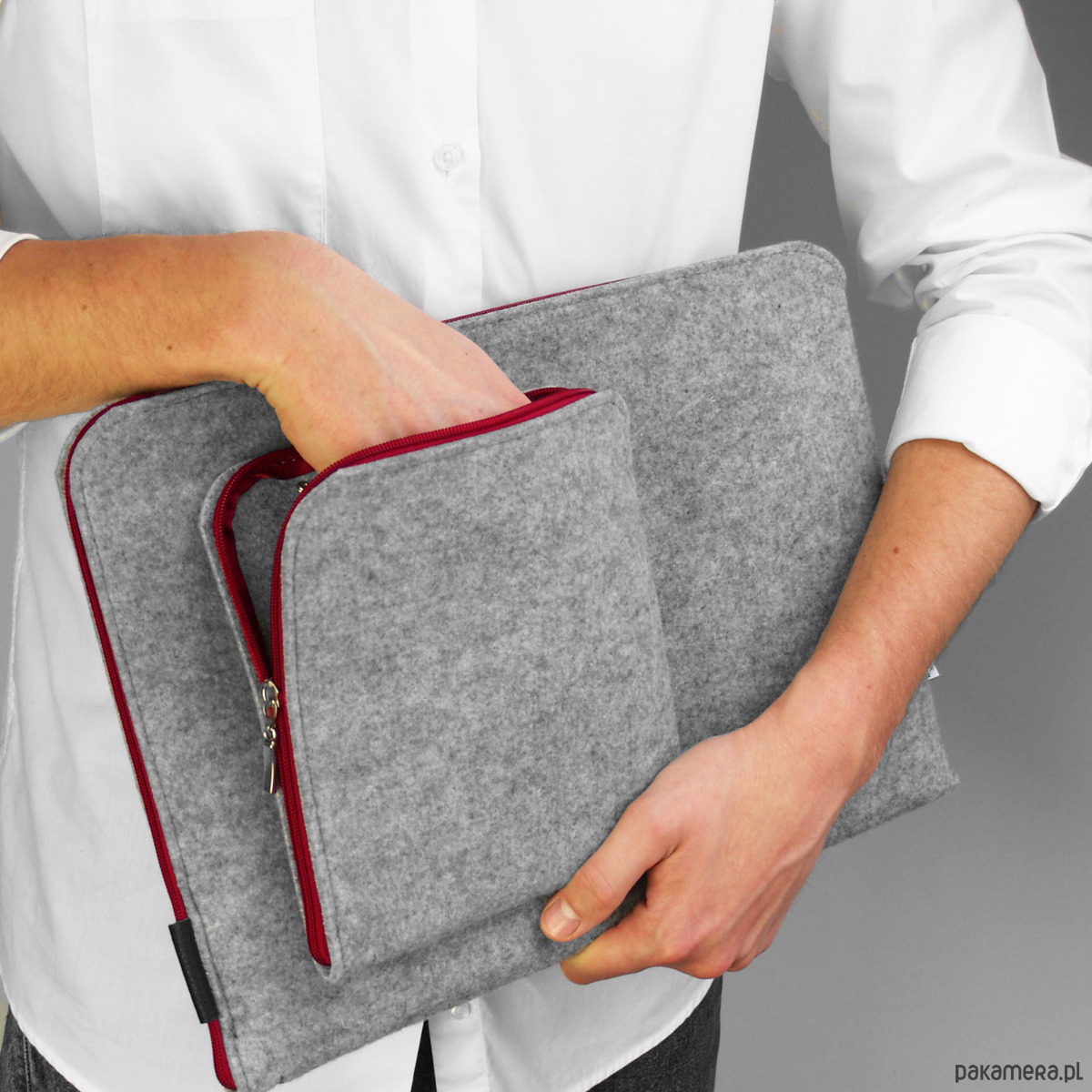 Pokrowiec na laptopa z jasnoszarego filcu.