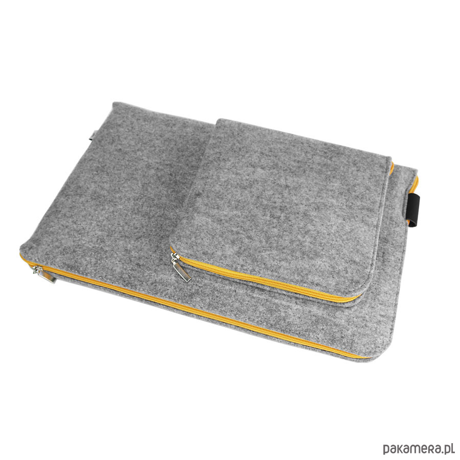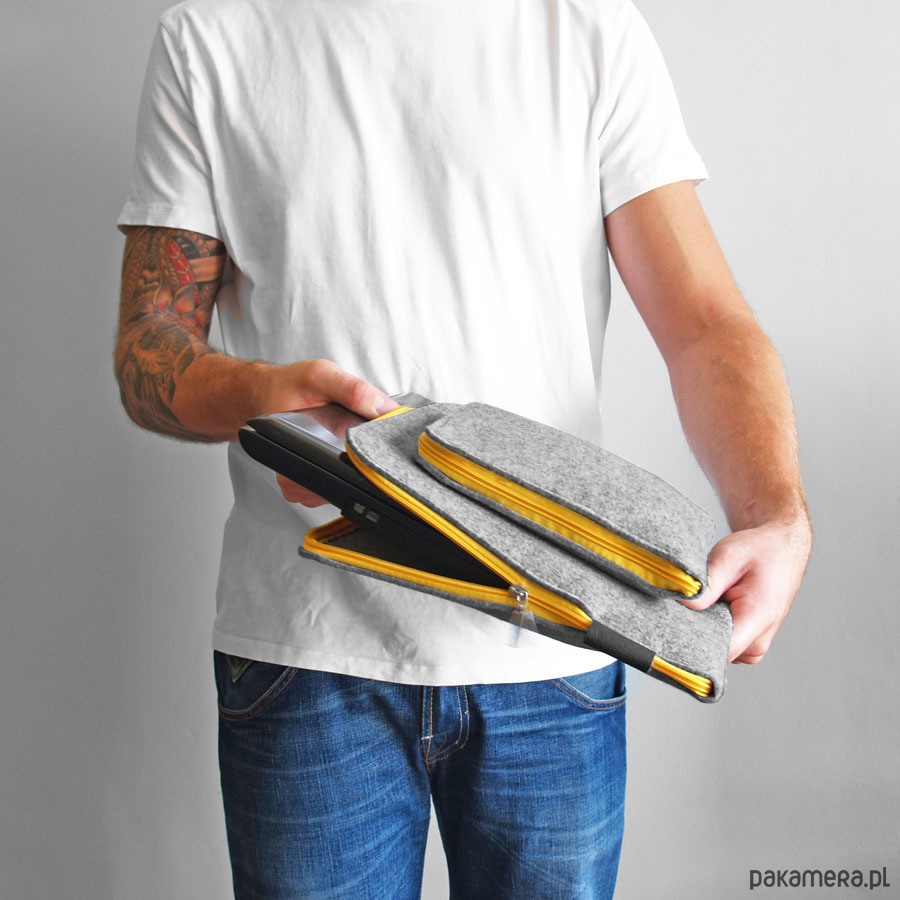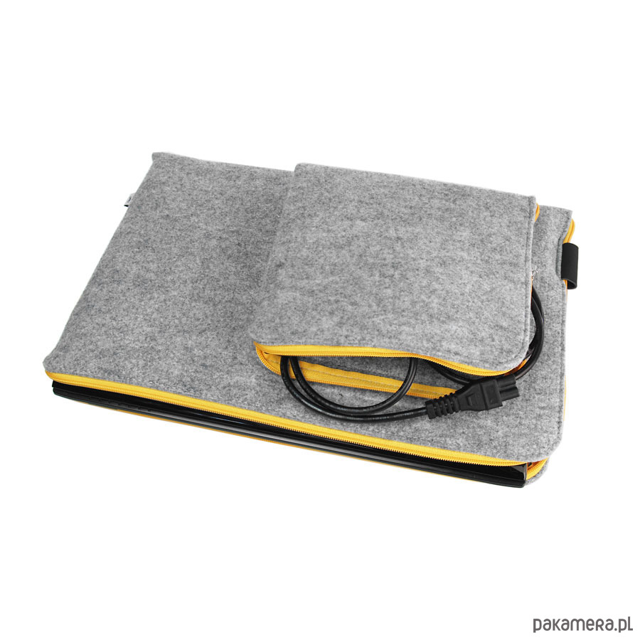 Pokrowiec z filcu na laptopa / tablet z naszytą dodatkową kieszonką na zasilacz.