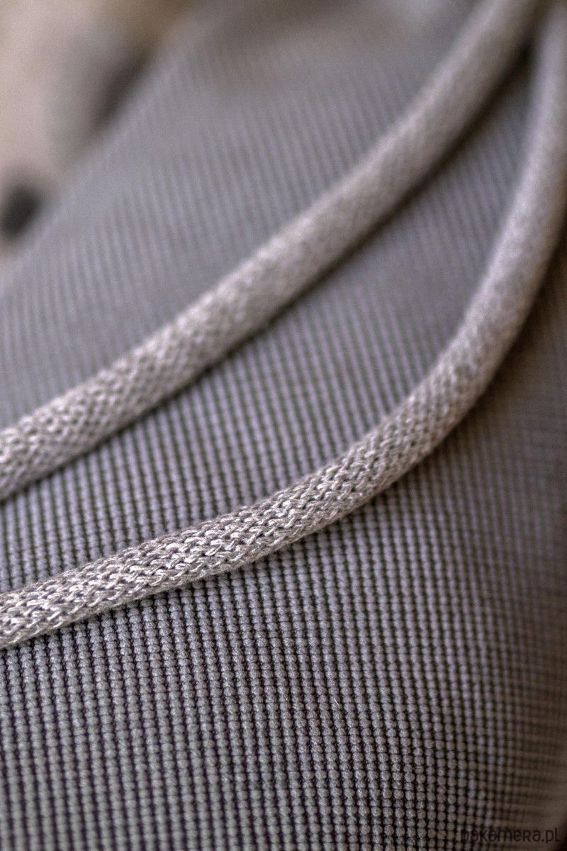 Plecak worek wykonany z szarej tkaniny o ciekawym tłoczeniu. Jego kształt sprawia, iż idealnie nadaje się na pokrowiec na matę do jogi.