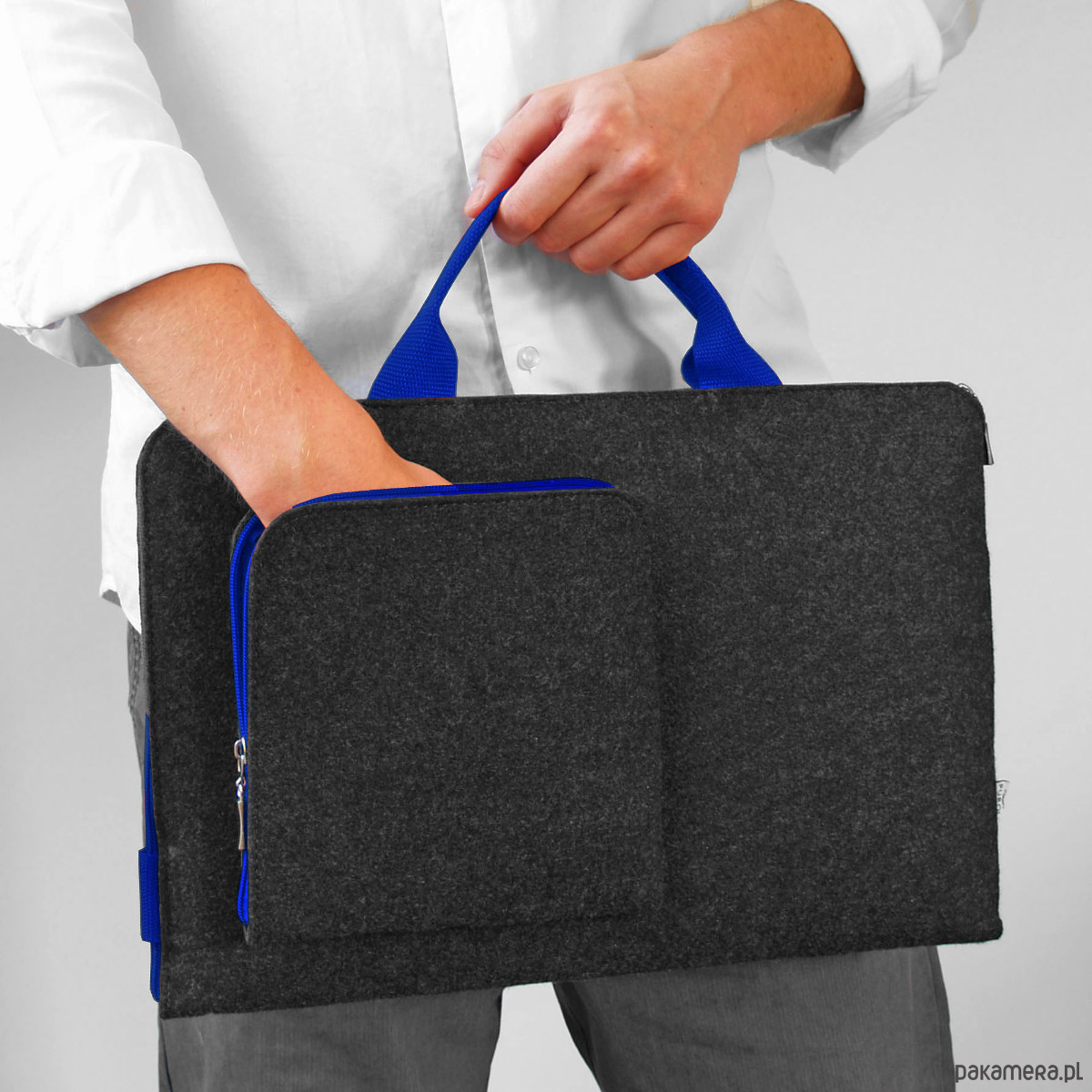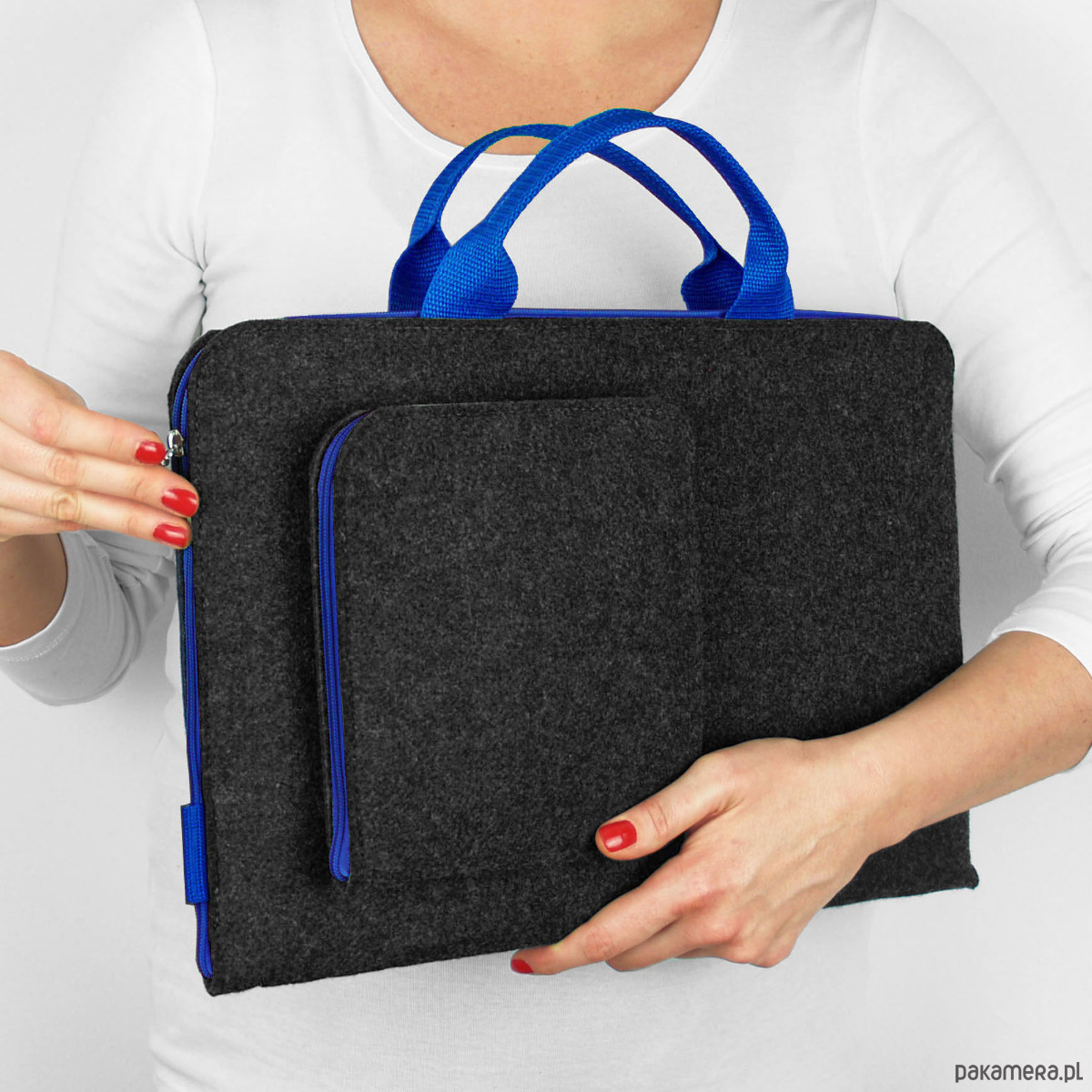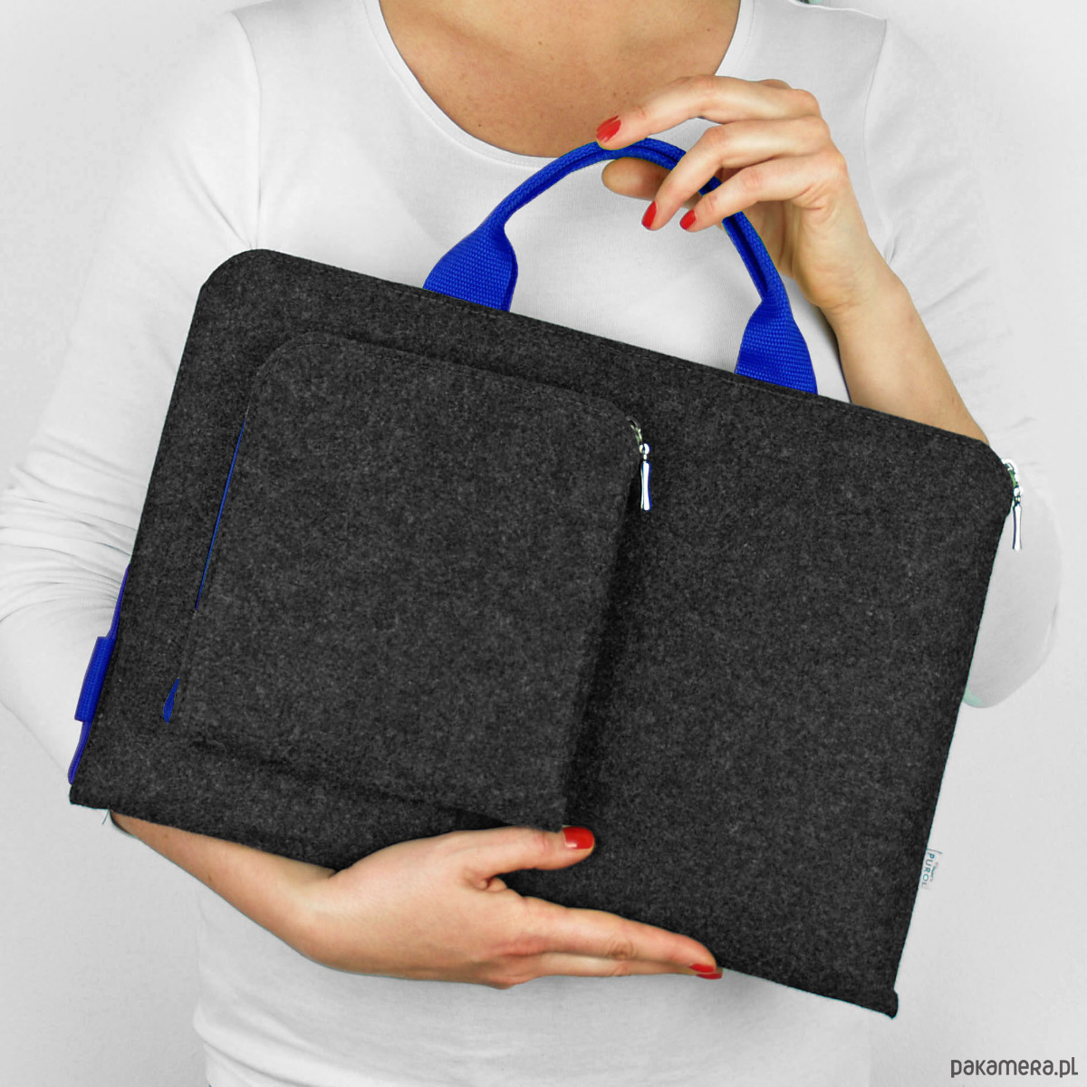 Pokrowiec z filcu na laptopa niebieskie rączki