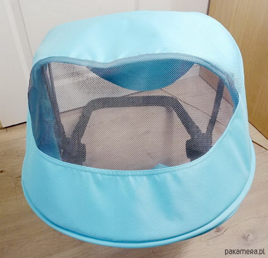 Budki, daszki do Bugaboo Donkey w kolorze błękitnym. Wykonane z tkaniny wodoodpornej. Podszewka również błękitna. Okienko z siatki w kolorze szarym.