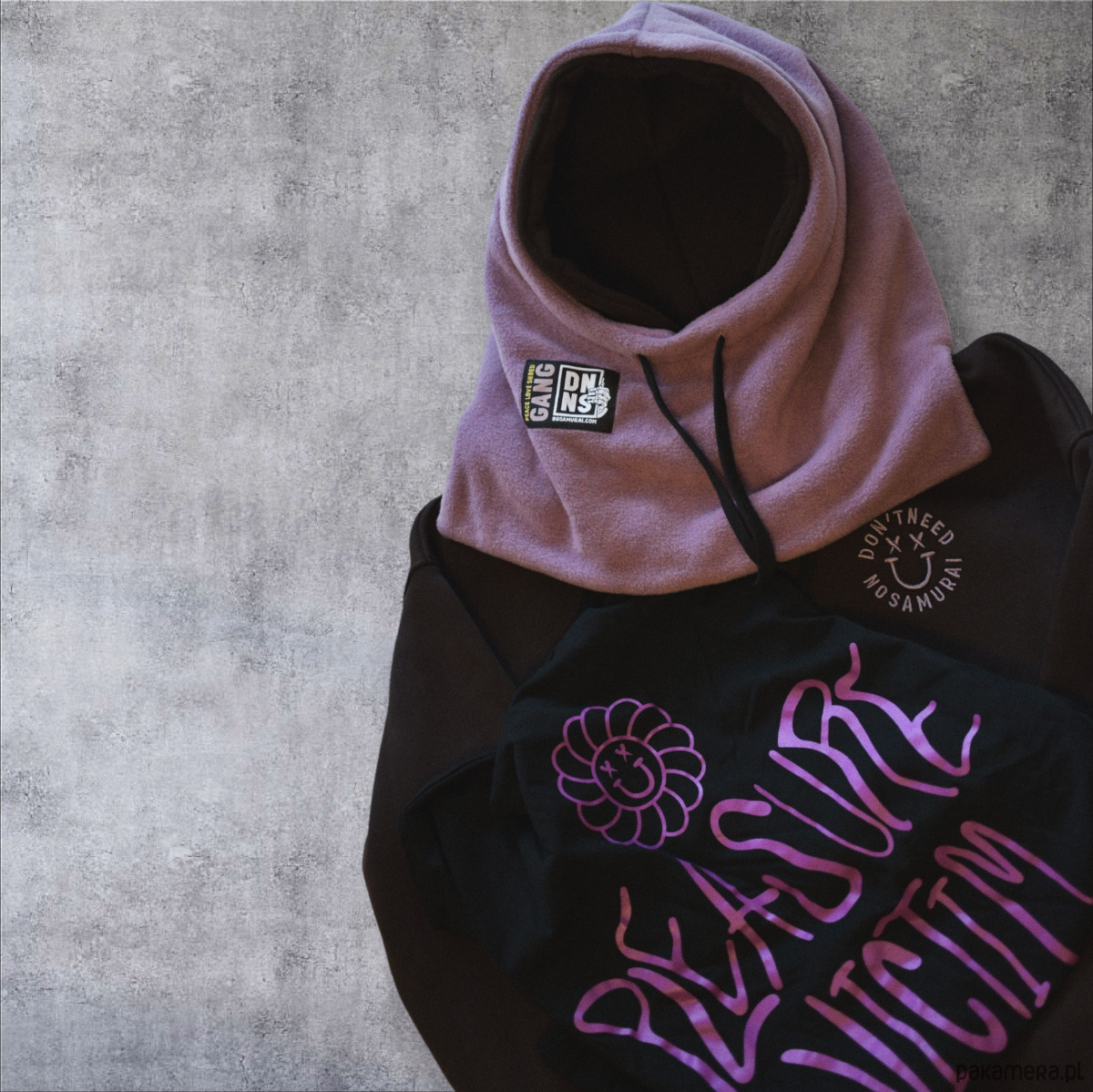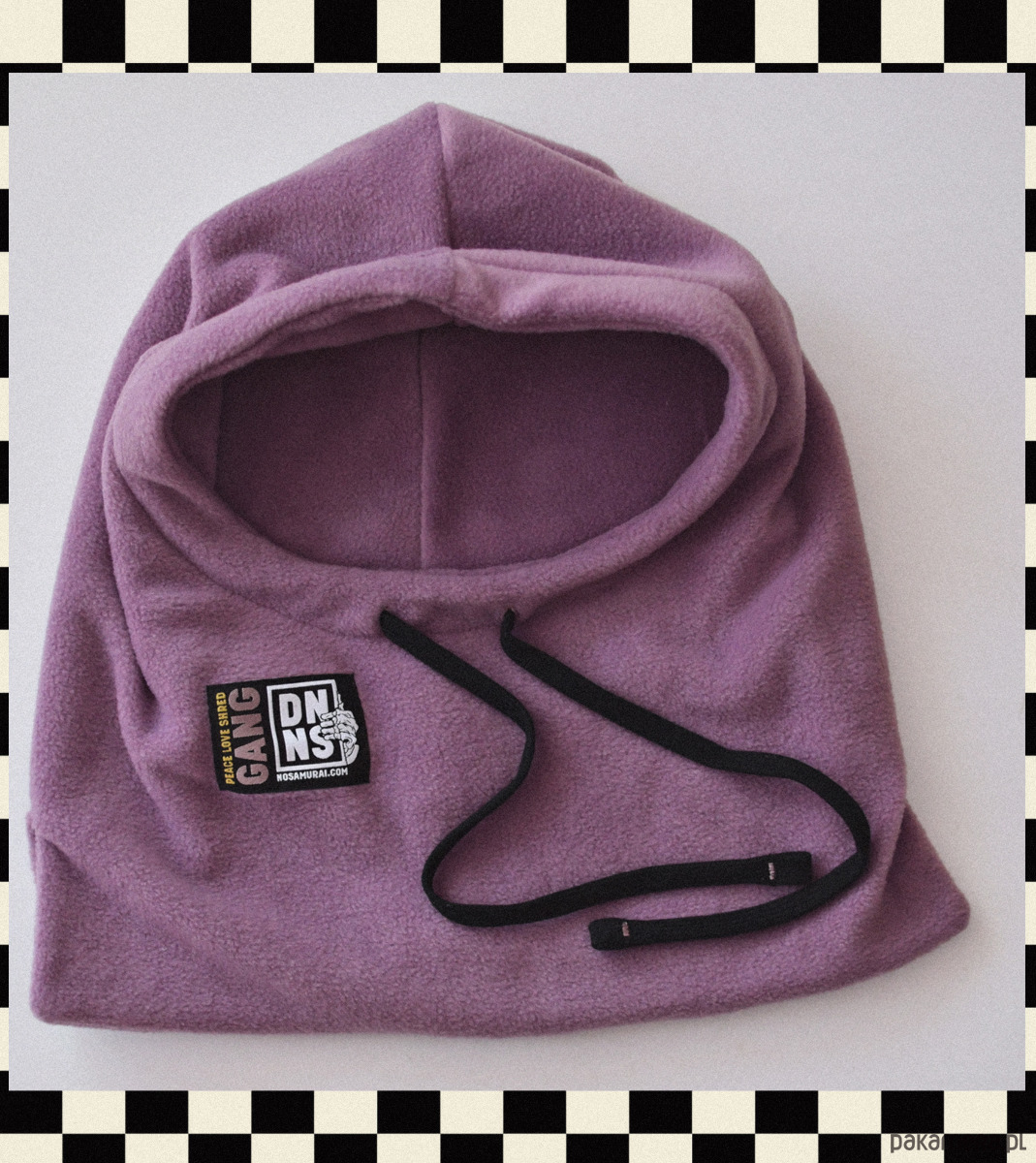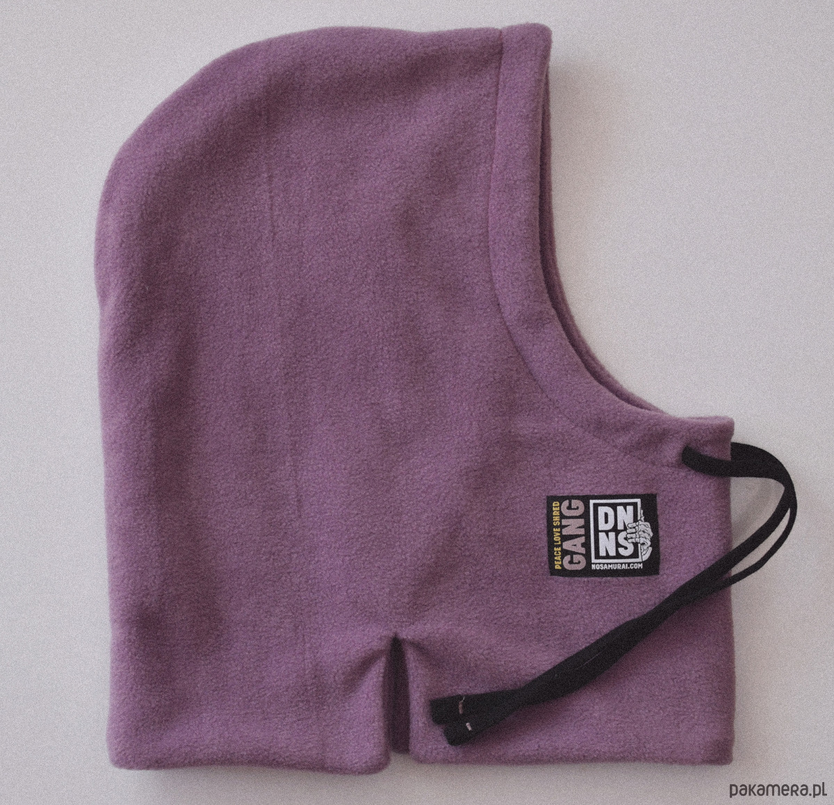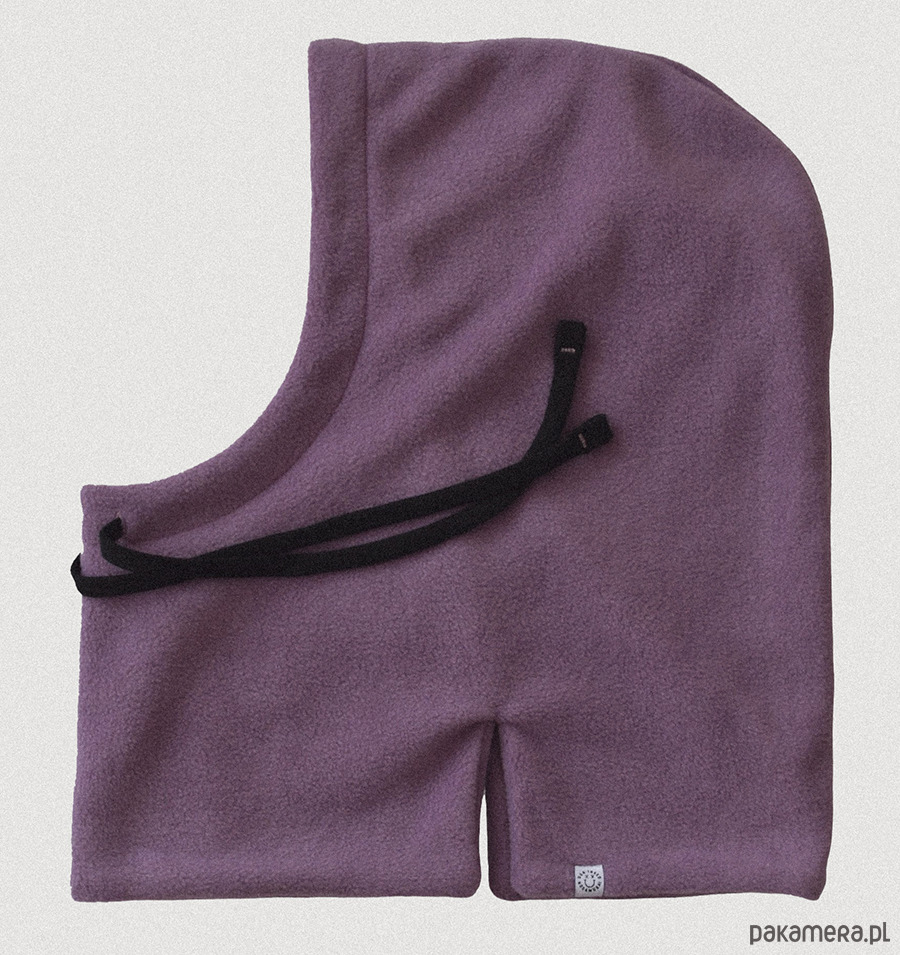 Dwuwarstwowy kaptur z ciepłego polaru w odcieniu dusty purple.