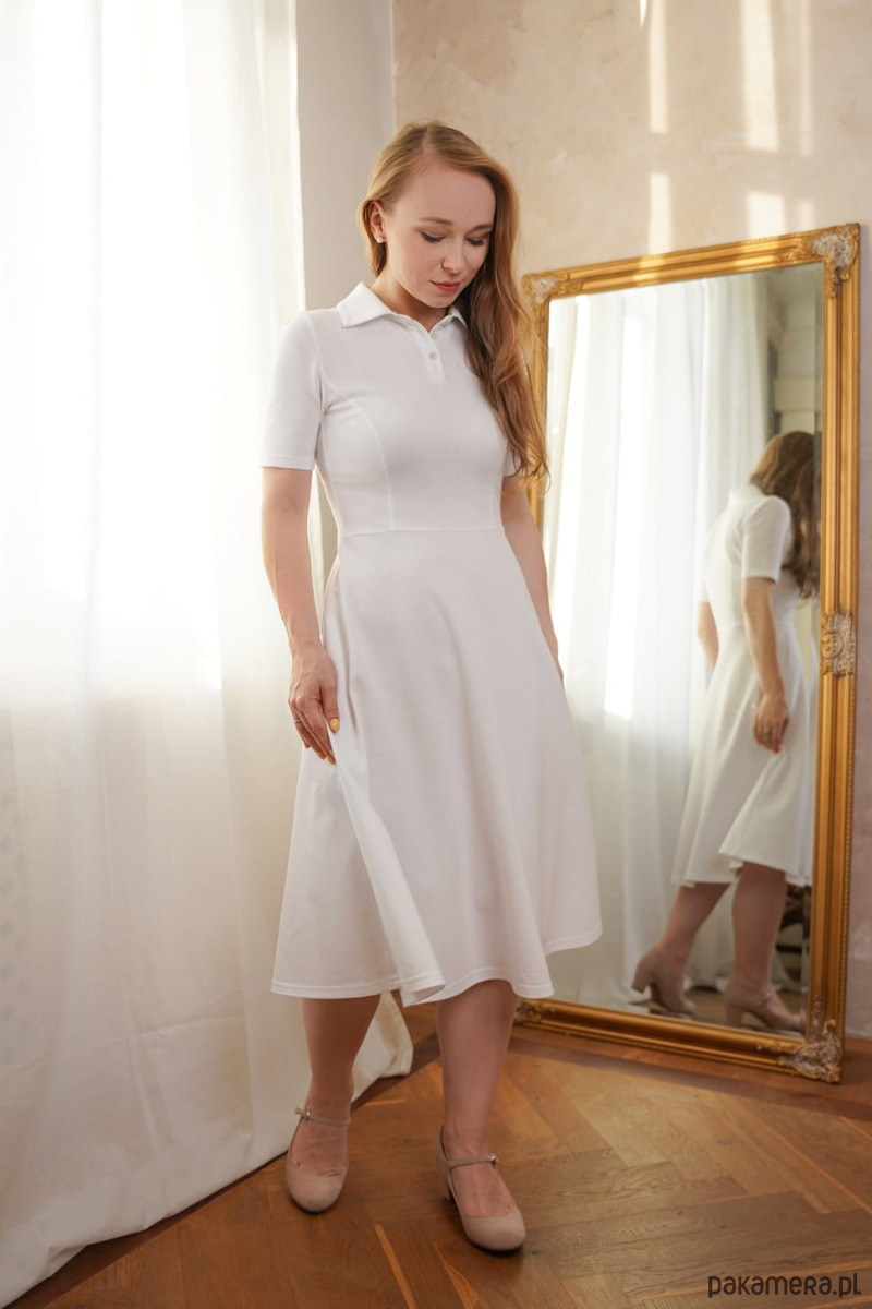 Sukienka z dzianiny, o składzie 100% bawełna. Stworzona zarówno do biegania za sprawunkami jak i na bardziej eleganckie okazje utrzymane w tonie "smart casual".