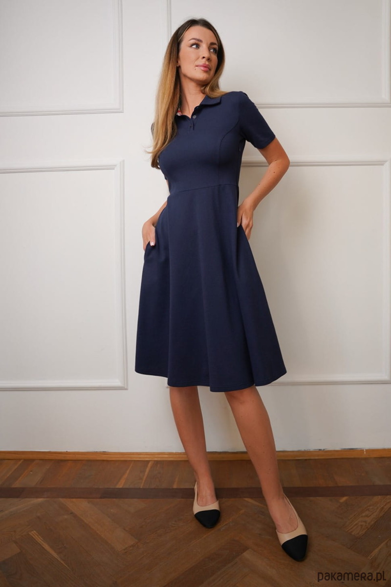 Sukienka z dzianiny, o składzie 100% bawełna. Stworzona zarówno do biegania za sprawunkami jak i na bardziej eleganckie okazje utrzymane w tonie "smart casual".