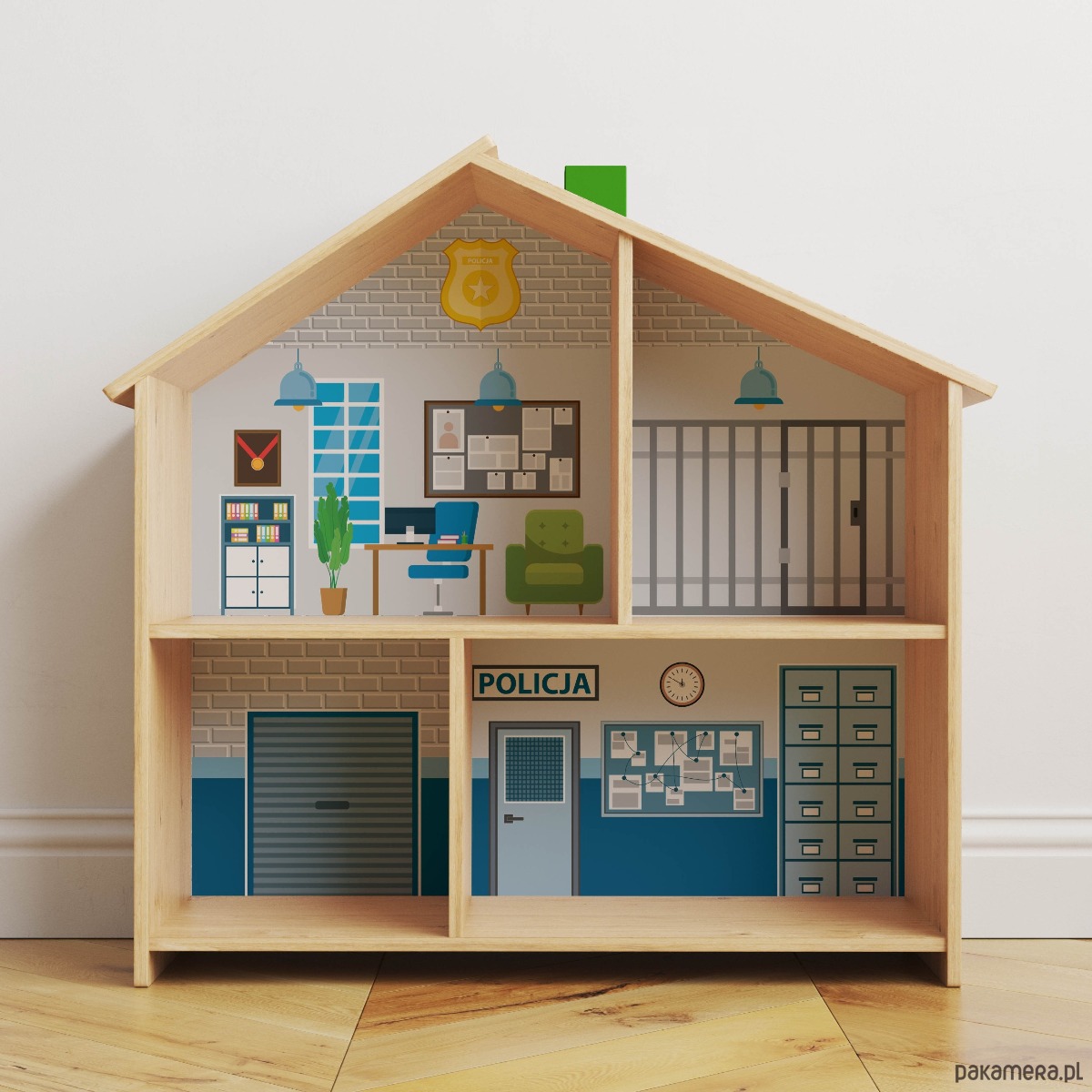 Zestaw 5 naklejek kompatybilnych z domkiem FLISAT – z motywem komisariatu policji