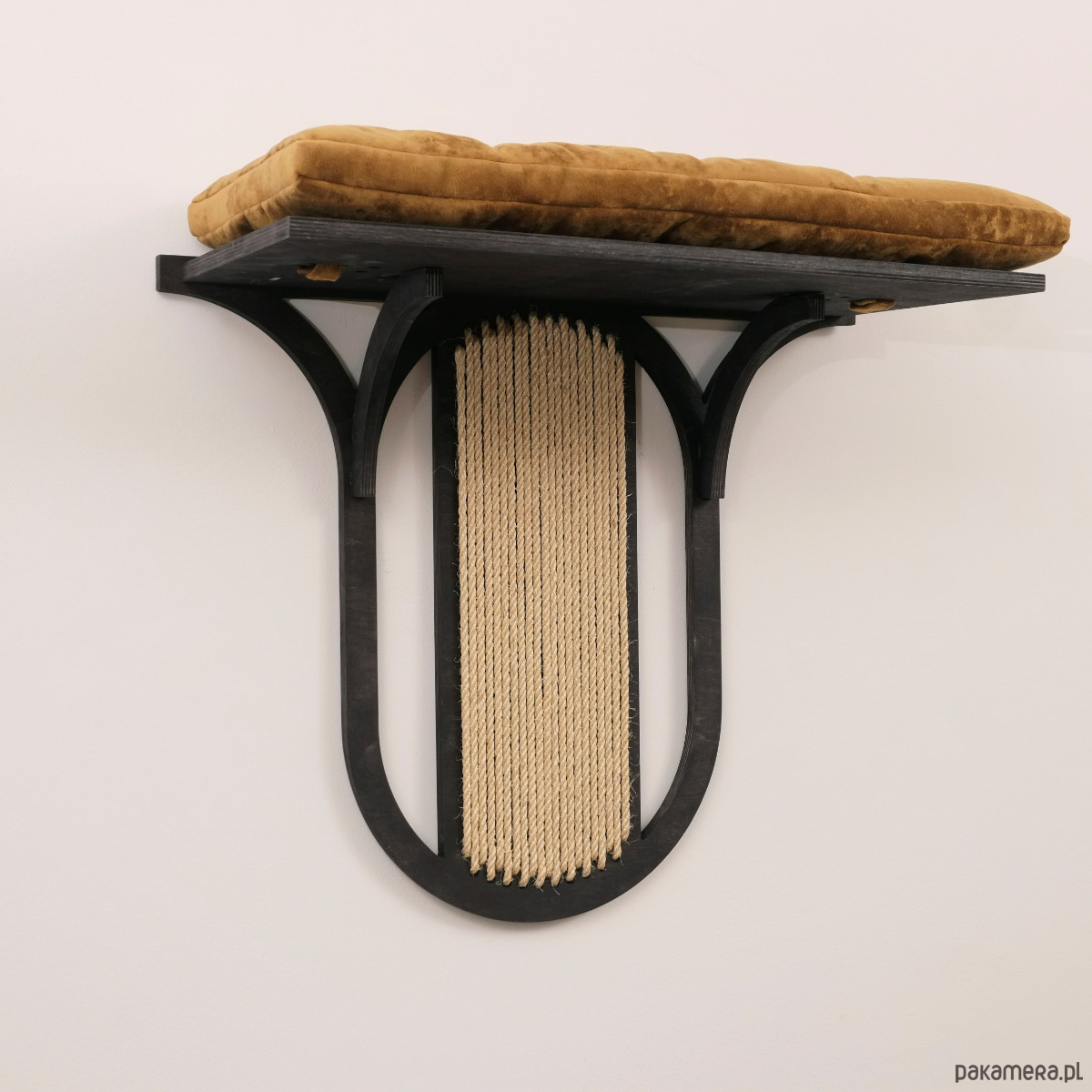 Elegancka półka dla kota i drapak w jednym. Poza imponującym designem półka dla kota jest bardzo praktycznym meblem dzięki sznurkowi. Kotek w ciągu dnia poza odpoczynkiem i zabawą będzie mógł zaspokoić potrzebę drapania.