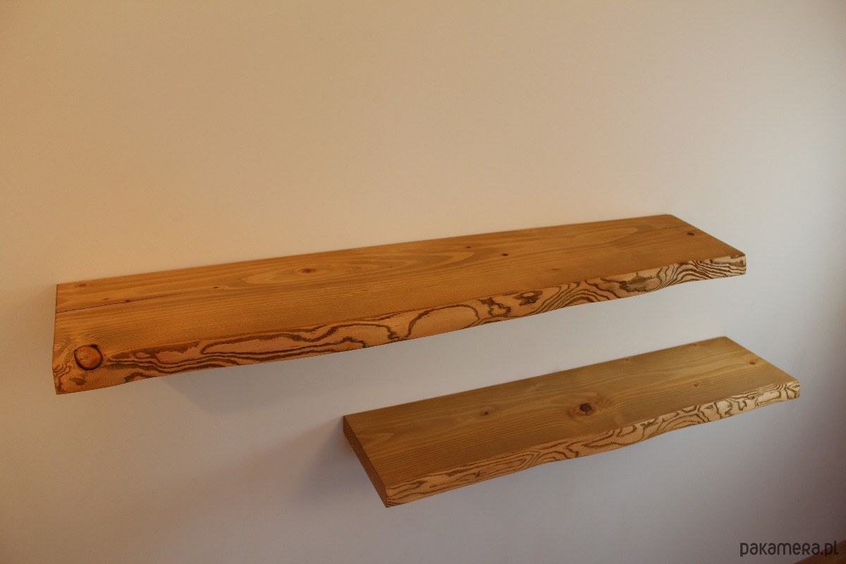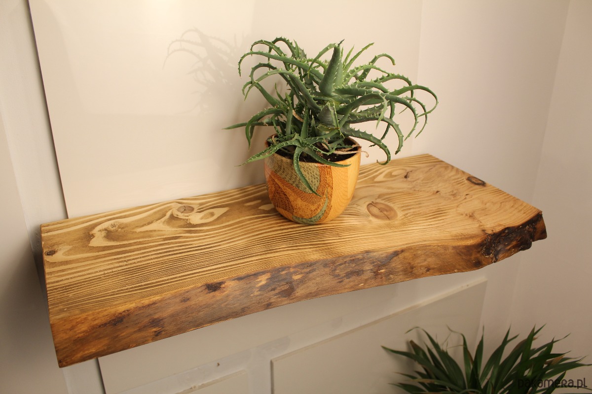 Półka drewniana wisząca na ścianę z żywą krawędzią grubość 38 mm