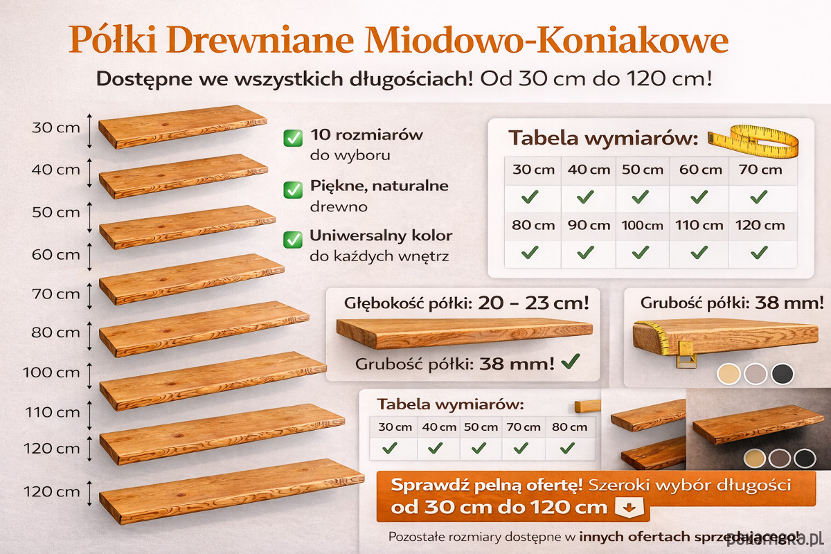 Dostępne wielkości półek -wytwarzamy półki od 20 centymetrów do 140 centymetrów