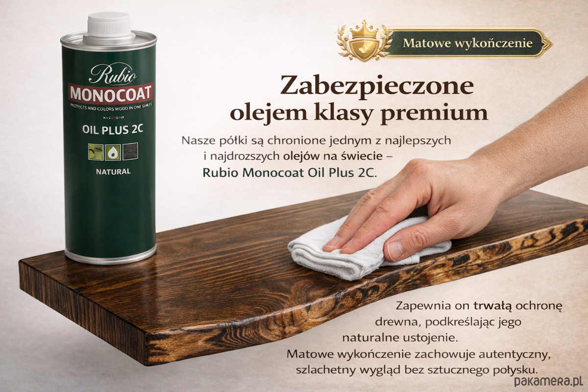 Półka drewniana wisząca na ścianę z żywą krawędzią grubość 38 mm