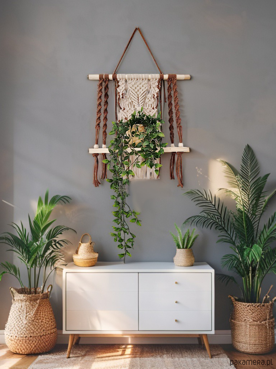 Poczuj radość i harmonię wprowadzając do swojego domu naszą półkę kwietnik makrama. To nie tylko praktyczny element wystroju, to również wyraz Twojego unikalnego stylu i wsparcie dla polskiego rękodzieła.