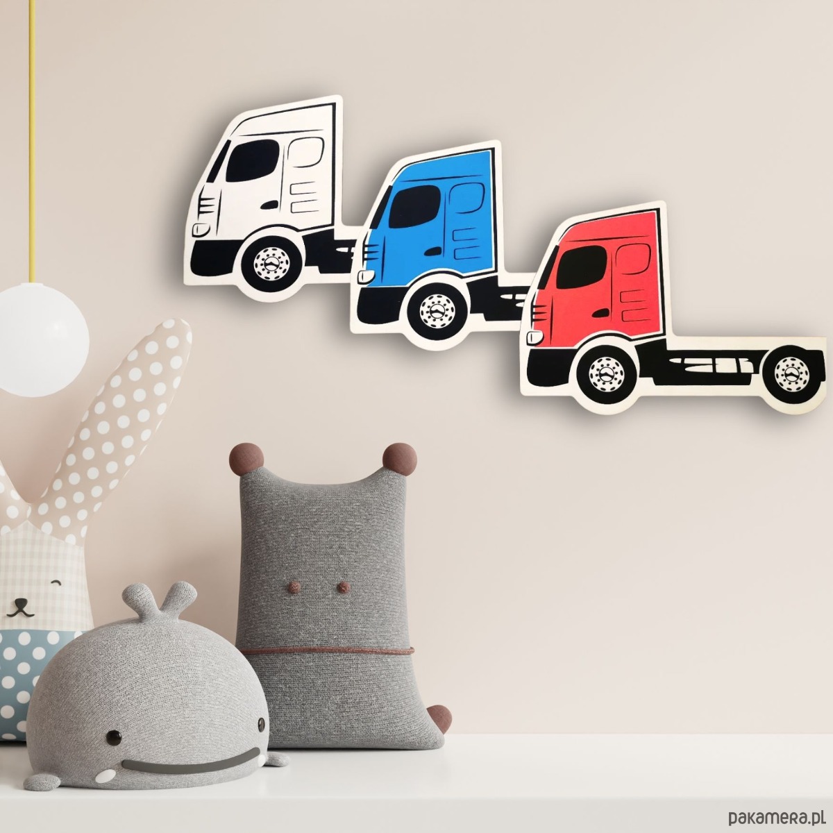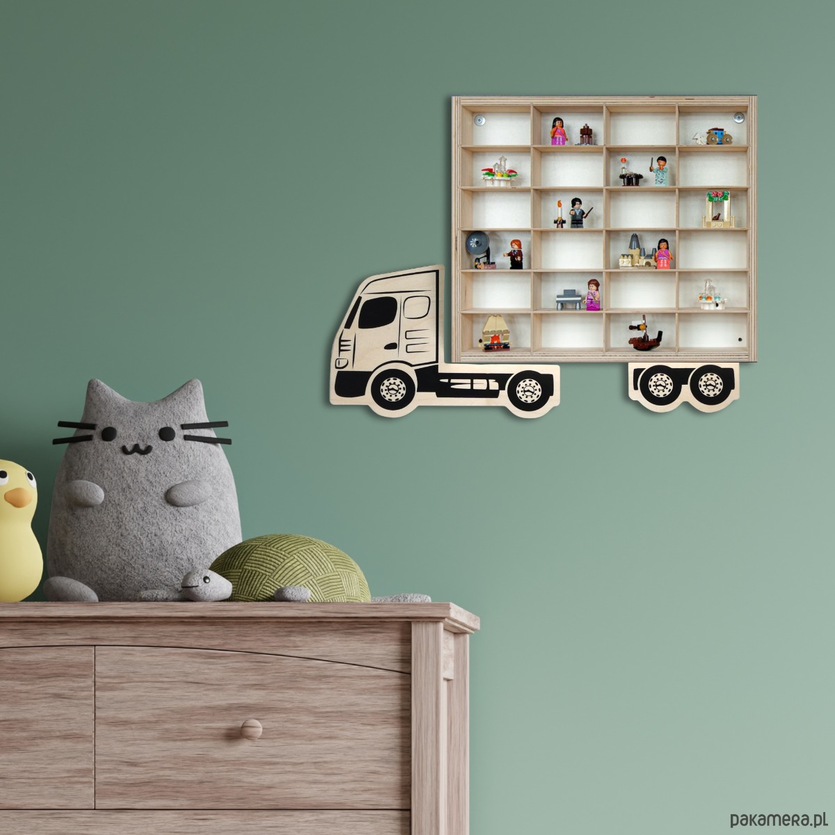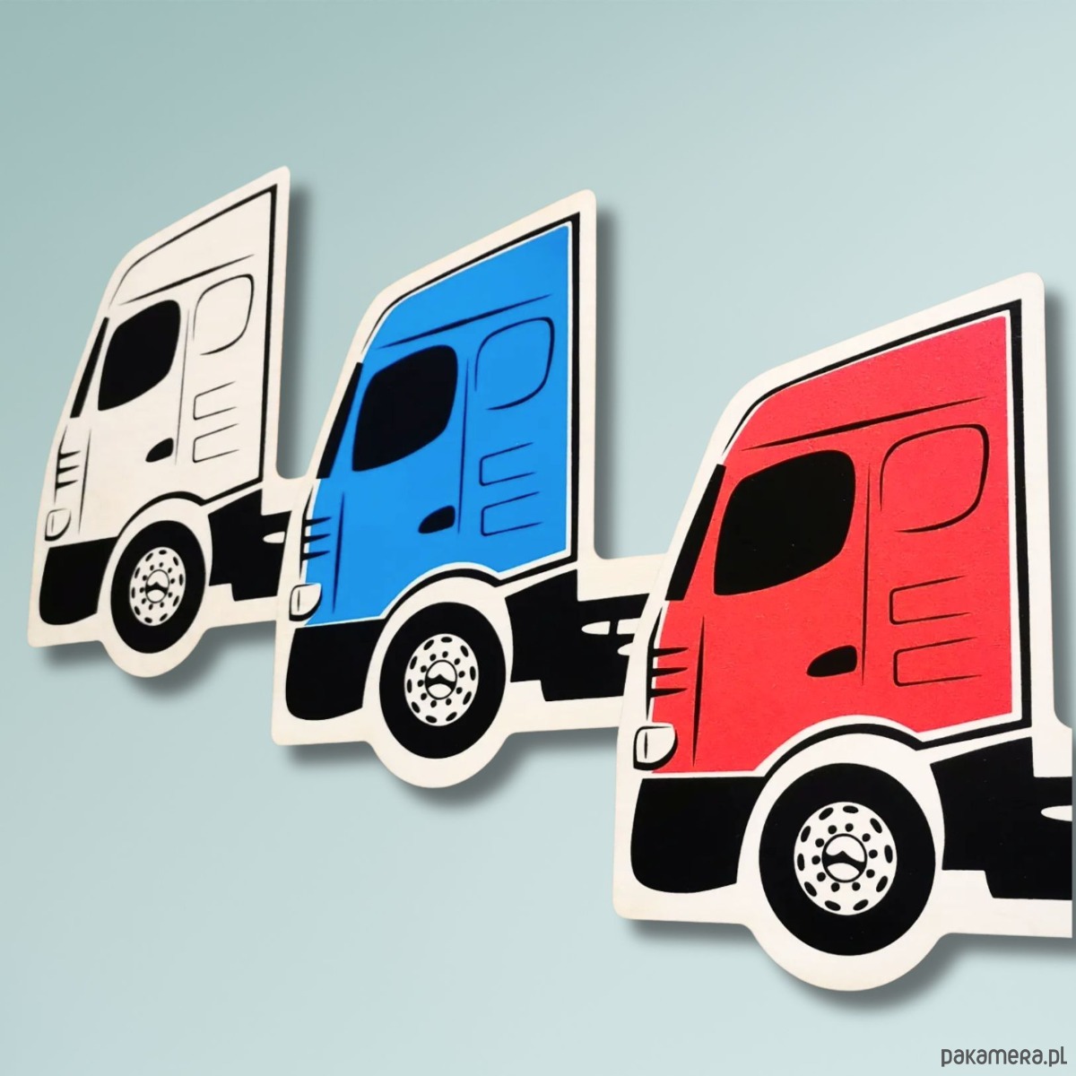 Ręcznie wykonana , drewniana półka z grafiką w kształcie Europejskiej Ciężarówki. (kolor naturalny drewna - brzoza)