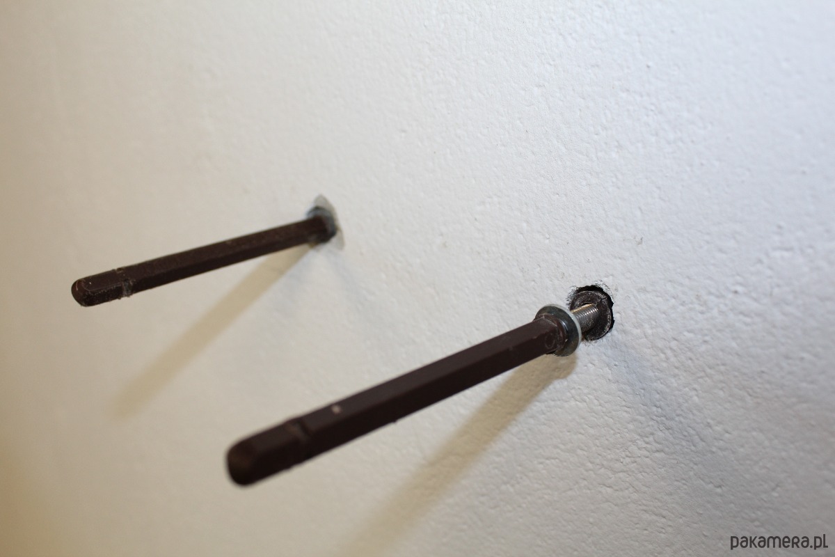 Pływające półki są mocowane na kołkach które są niewidoczne z zewnątrz co daje bardzo dobry efekt wizualny, do każdej półki są dołączone kołki montażowe.