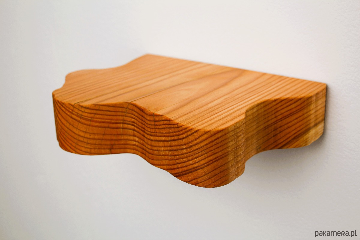 Drewniana półka pływająca z drewna modrzewiowego pokryta i zabezpieczona jednym z najlepszych i najdroższych rodzajów oleju na świecie Rubio Monocoat Oil Plus 2C