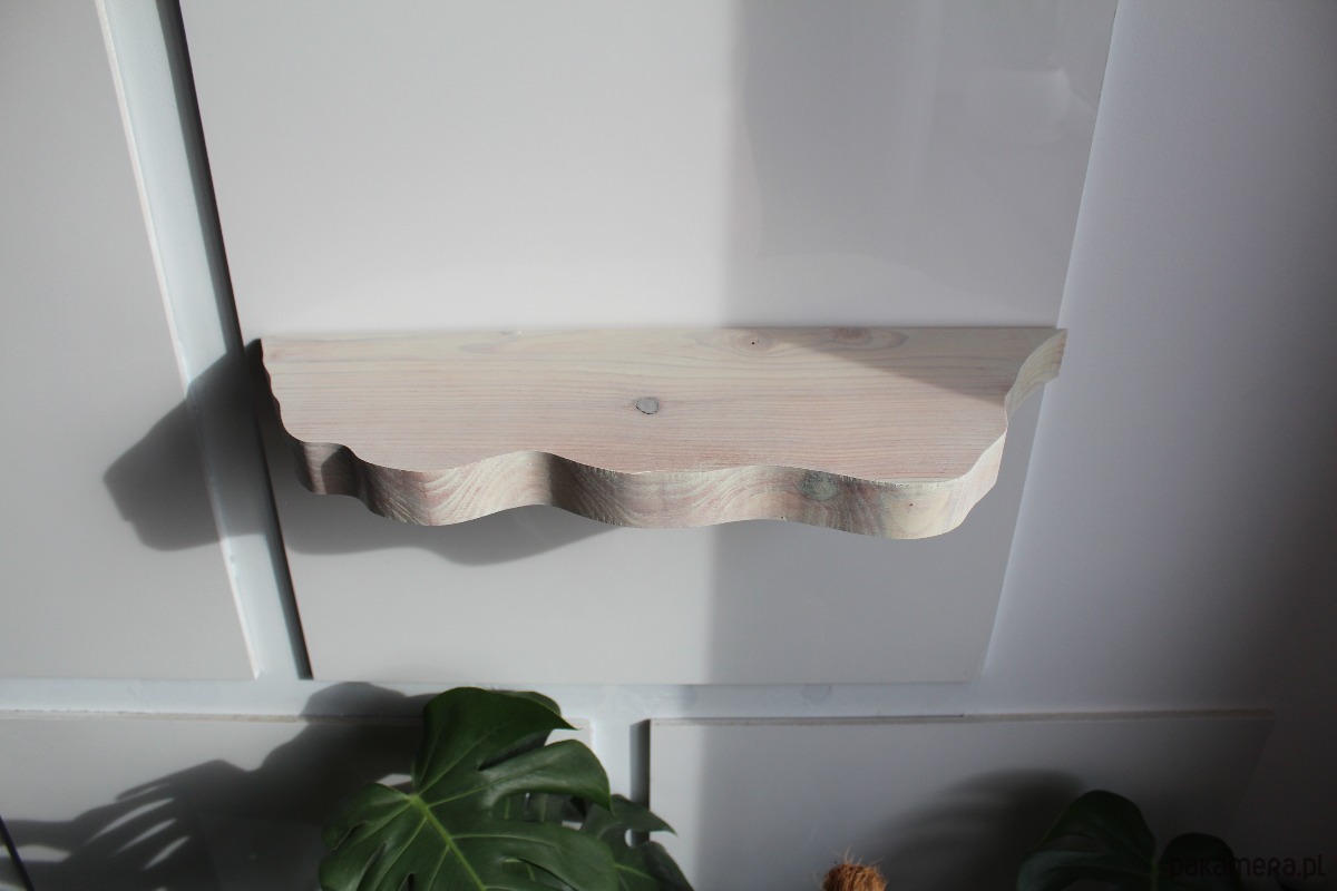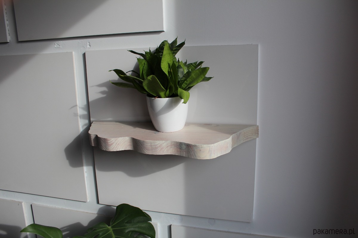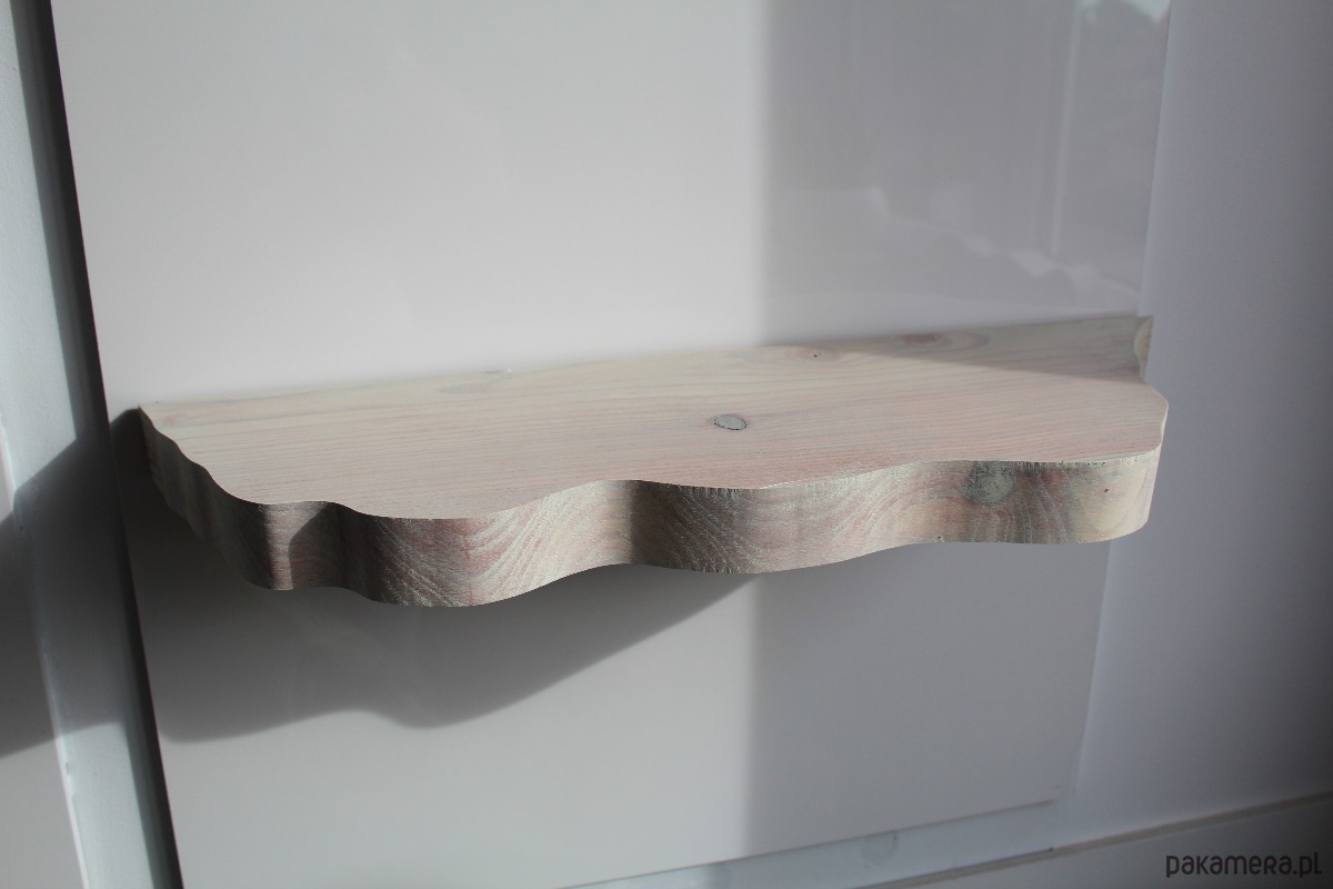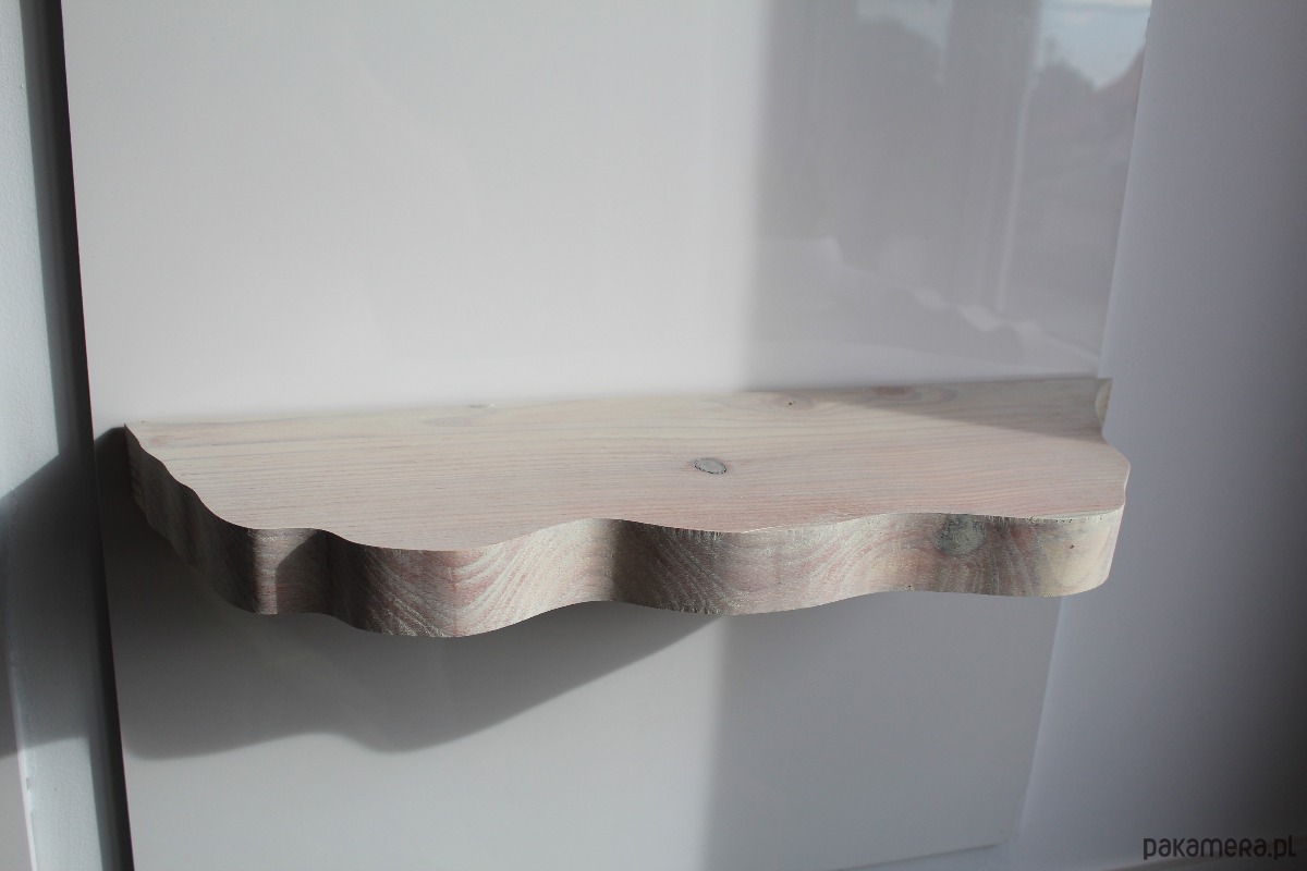 Półka posiada dwa otwory wywiercone z tyłu półki co widać na zdjęciach. Dodatkowo w zestawie znajdują się dwie kołki rozporowe. Na koniec wystarczy jedynie nasunąć półkę na kołki. Wymagane jest wiertło Tp. Wiertło 13 mm nie jest dołączone.