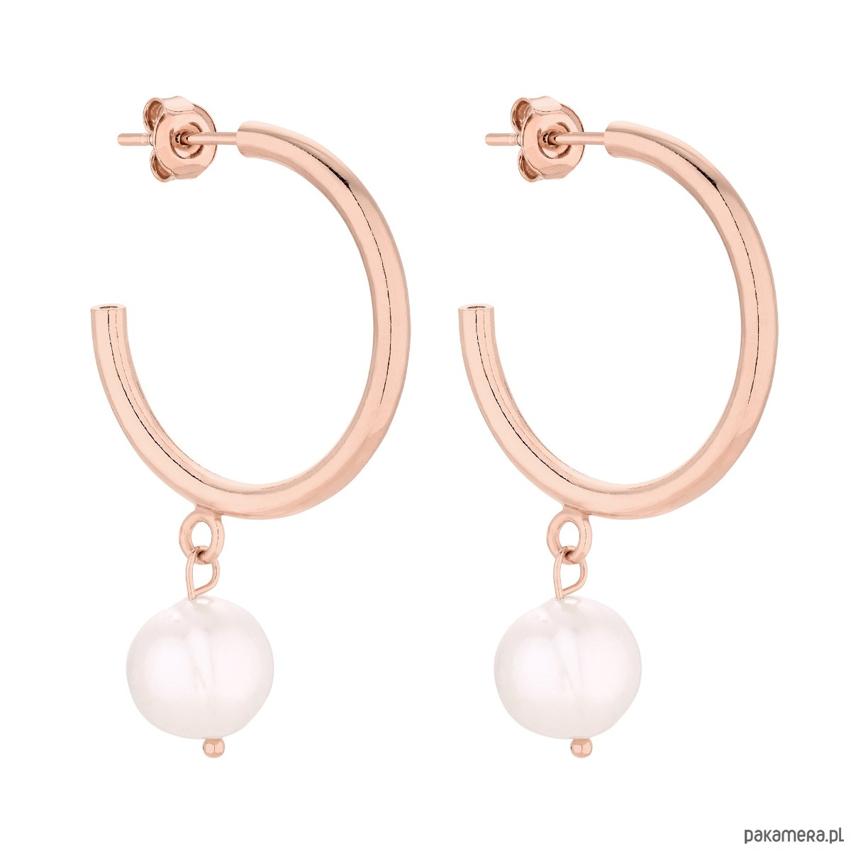 Grube, półokrągłe, złote kolczyki z naturalnymi, nieregularnymi perłami. Całość wykonana ze srebra 925 powlekanego 18 karatowym różowym złotem.