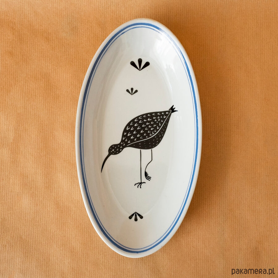Półmisek z czaplą. Stworzony w duchu zero waste i upcykling - pochodzi z drugiej ręki. Kiedyś przez kogoś używany, później zapomniany, teraz ma szansę na nowy dom! Kupując przedmioty od Empe dbasz o naszą planetę ♥