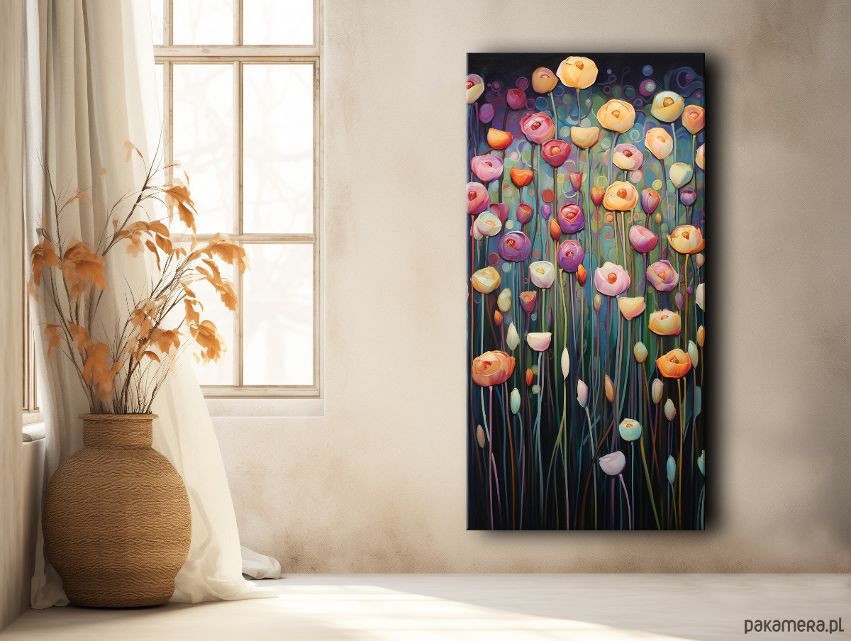 Polne kwiaty - Obraz na płótnie - Druk, Blejtrama - Olej, Boho, Abstrakcja #6