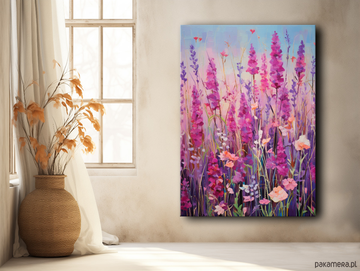 Wydruk na płótnie to artystyczna reprodukcja obrazu, który przedstawia abstrakcyjną grafikę kwiatów. Dzięki wyraźnemu użytemu stylowi przypominającemu farby olejne, obraz emanuje życiem i kolorami. Idealnie pasuje do wnętrz o charakterze boho lub rustykalnym, nadając im subtelnego uroku i naturalnej harmonii. Artystyczny akcent, który przyciąga uwagę i tworzy przytulną atmosferę. Wydruk na płótnie z grafiką kwiatów to doskonały sposób na wprowadzenie natury i sztuki do swojego wnętrza.