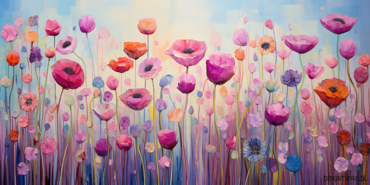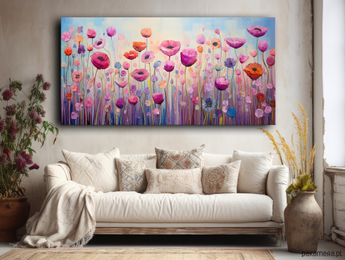 Polne maki - Obraz na płótnie - Druk, Blejtrama - Olej Boho Abstrakcja #26