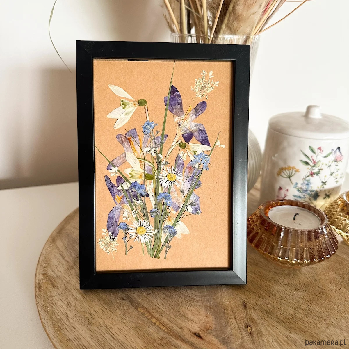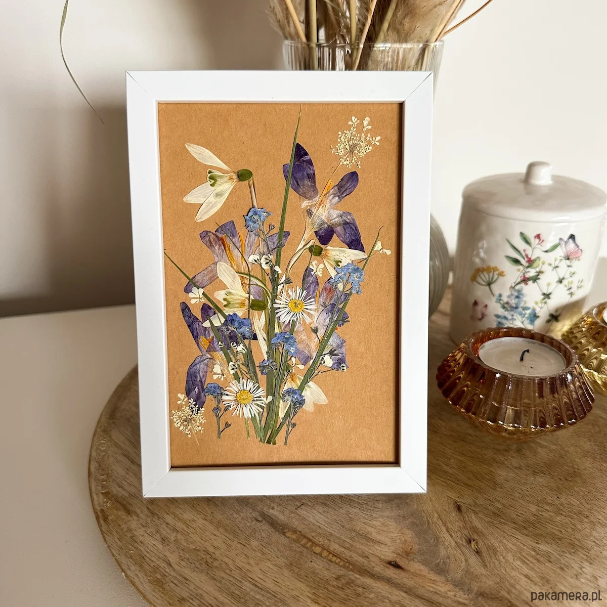 Przedstawiamy Wam nasze obrazki z suszonymi kwiatkami. Są to unikalne dzieła stworzone z miłości do natury i rękodzieła. Każda z kompozycji jest wyjątkowa i powstaje z ręcznie zbieranych i ususzonych kwiatów, które starannie przechowywane tworzą piękne ozdoby na lata. Ten fragment natury zamknięty w ramce pozwoli Ci ozdobić wnętrze i wnieść do niego subtelny i unikatowy klimat.