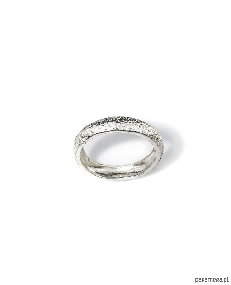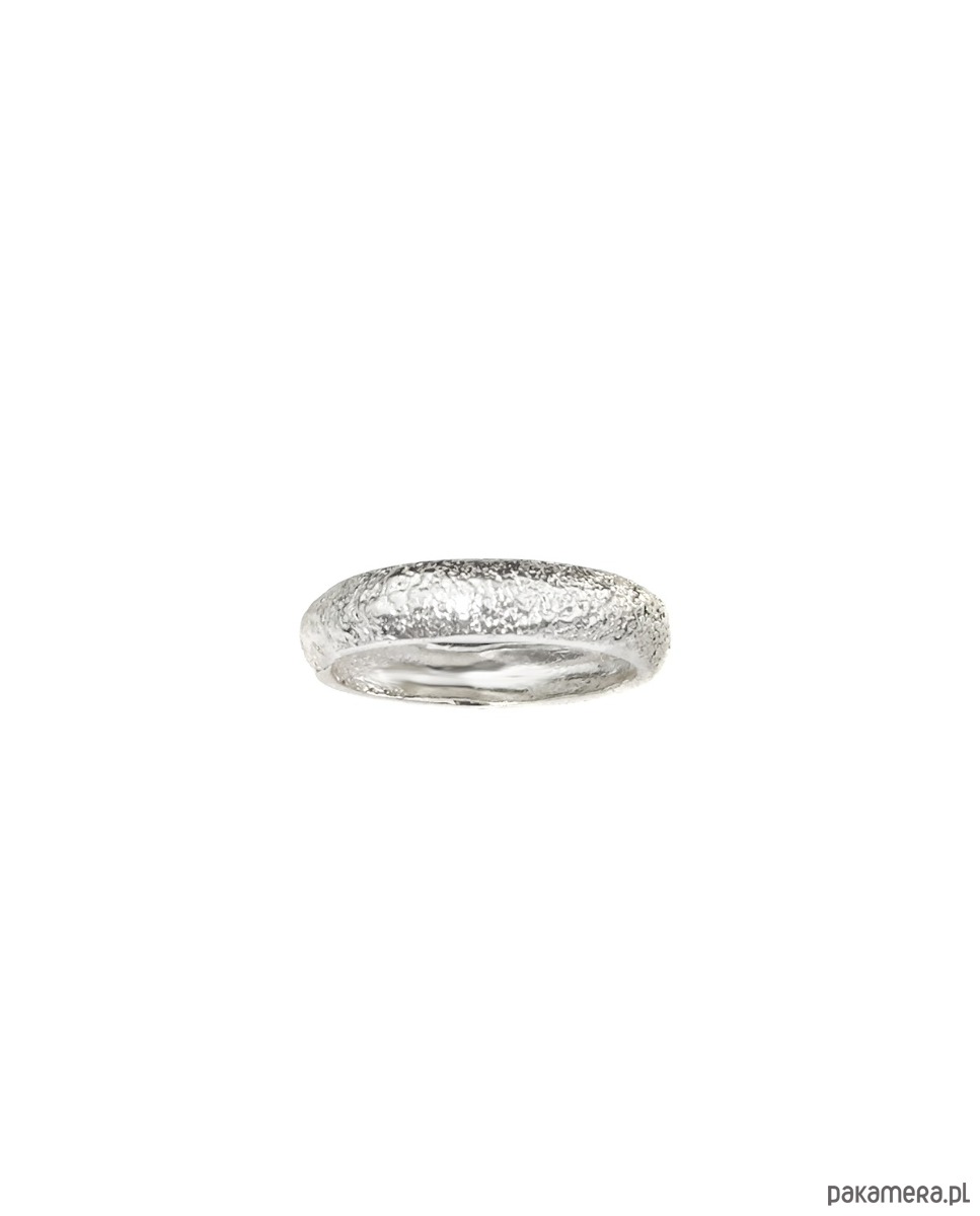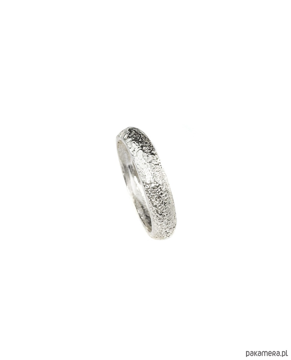 Wyjątkowa, oryginalna obrączka o pękatej formie i fakturowanej powierzchni, wykonana ręcznie ze srebra 925. Dostępna w sklepie również w wersji złoconej.