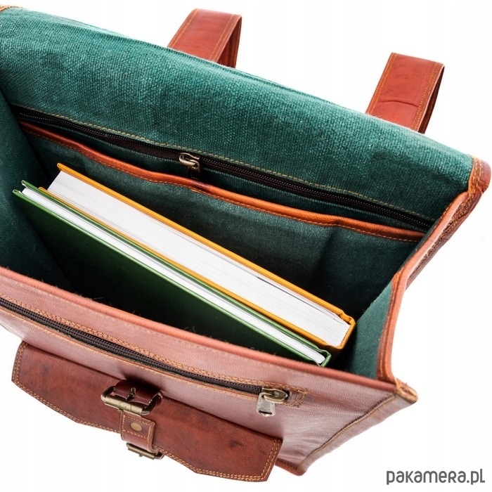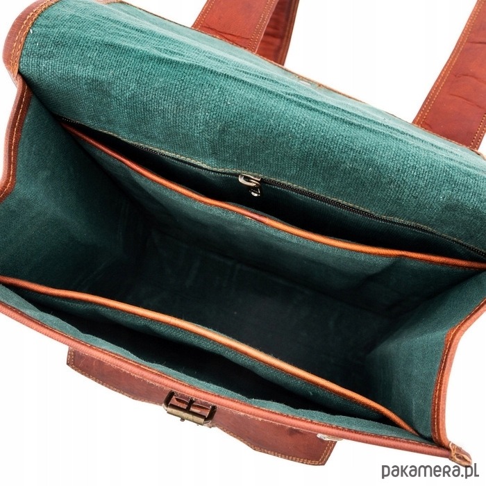 - wewnątrz naszych plecaków vintage mamy podszewkę w ciemnozielonym kolorze, wykonaną z tkaniny typu canvas
