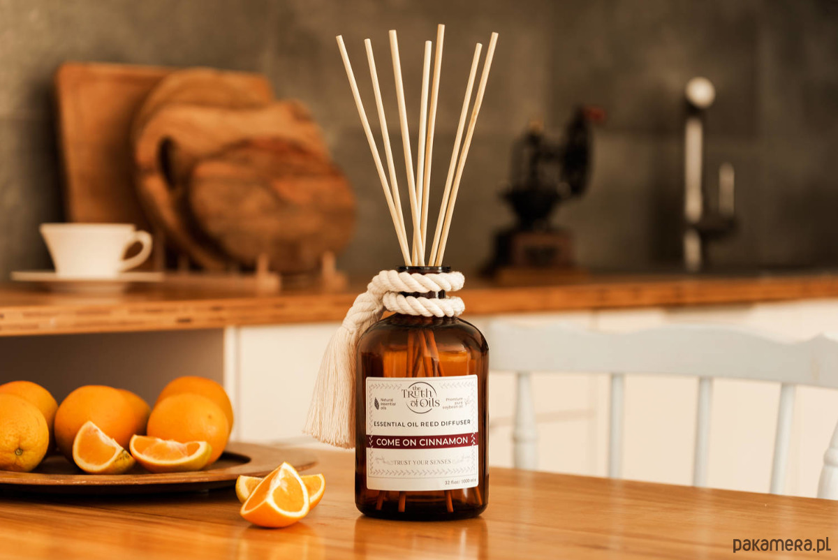 to połączenie naturalnych olejków eterycznych pomarańczy (nuty głowy) i cynamonu (nuty serca). Rattanowe patyczki zastosowane w dyfuzorze zapachowym posiadają specjalne kanaliki na całej swojej długości, dzięki czemu doskonale nasycają się zapachem i równie efektywnie go uwalniają w pomieszczeniu.