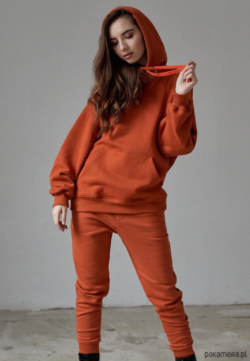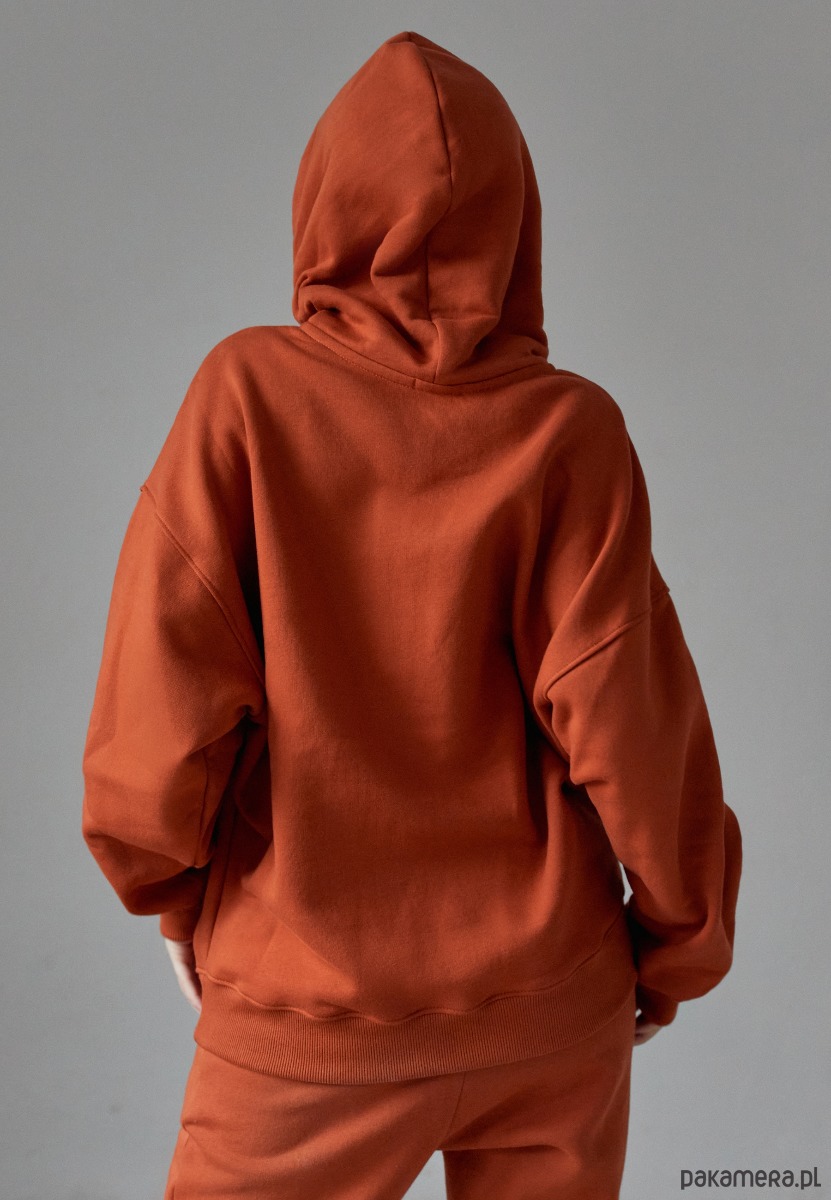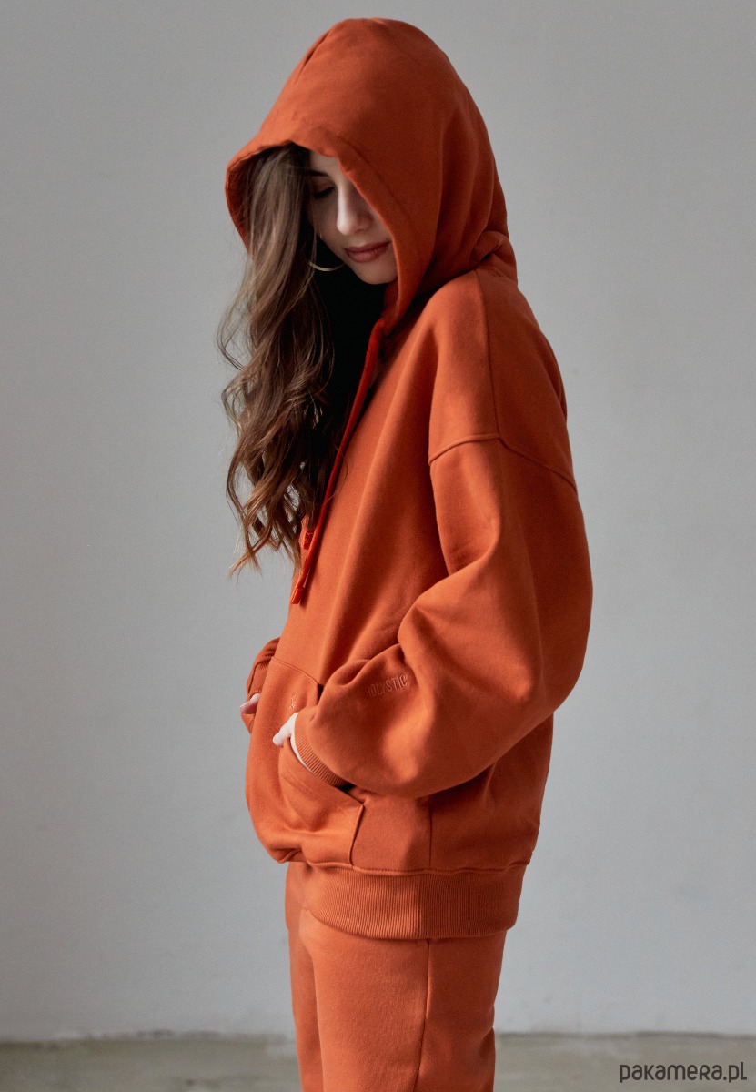 Pomarańczowa bluza oversize wykonana z bawełny o gramaturze 280 gram. Milutka w dotyku dzianina od wewnętrzej strony posiada charakterystyczny puch lub mech.