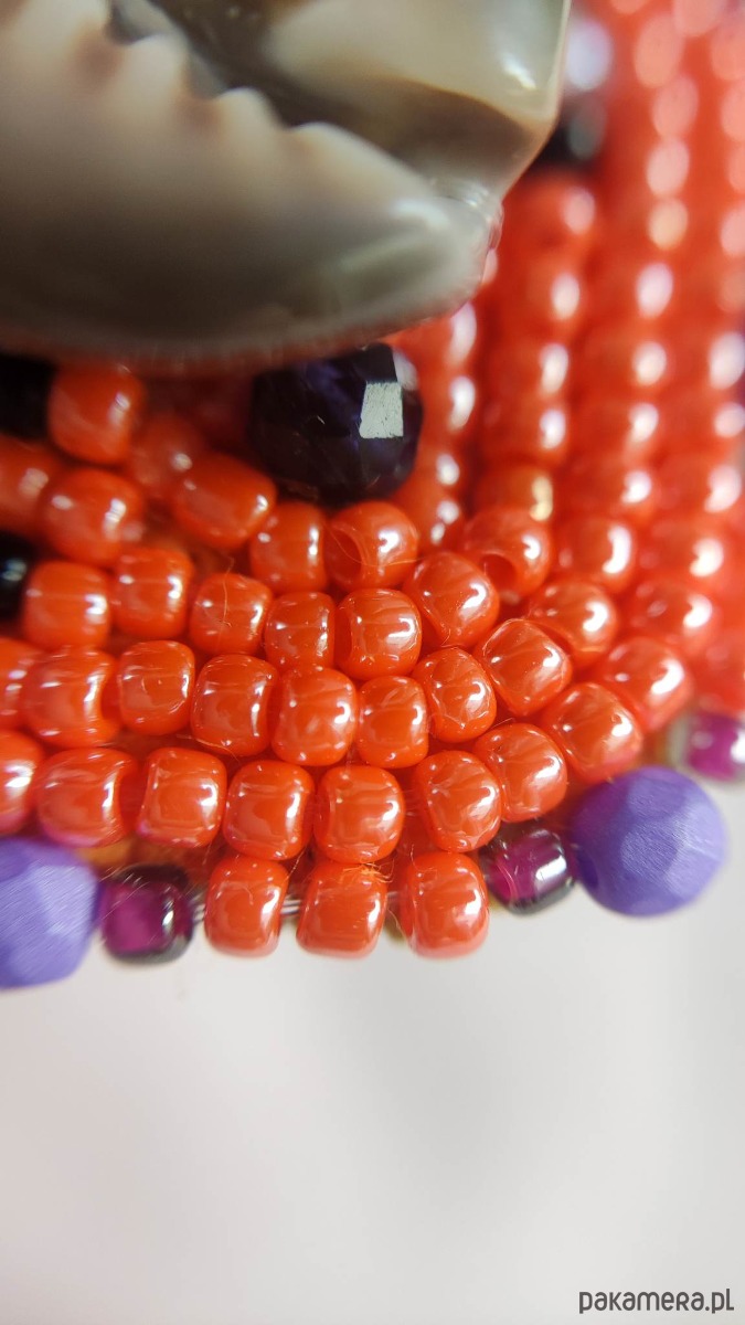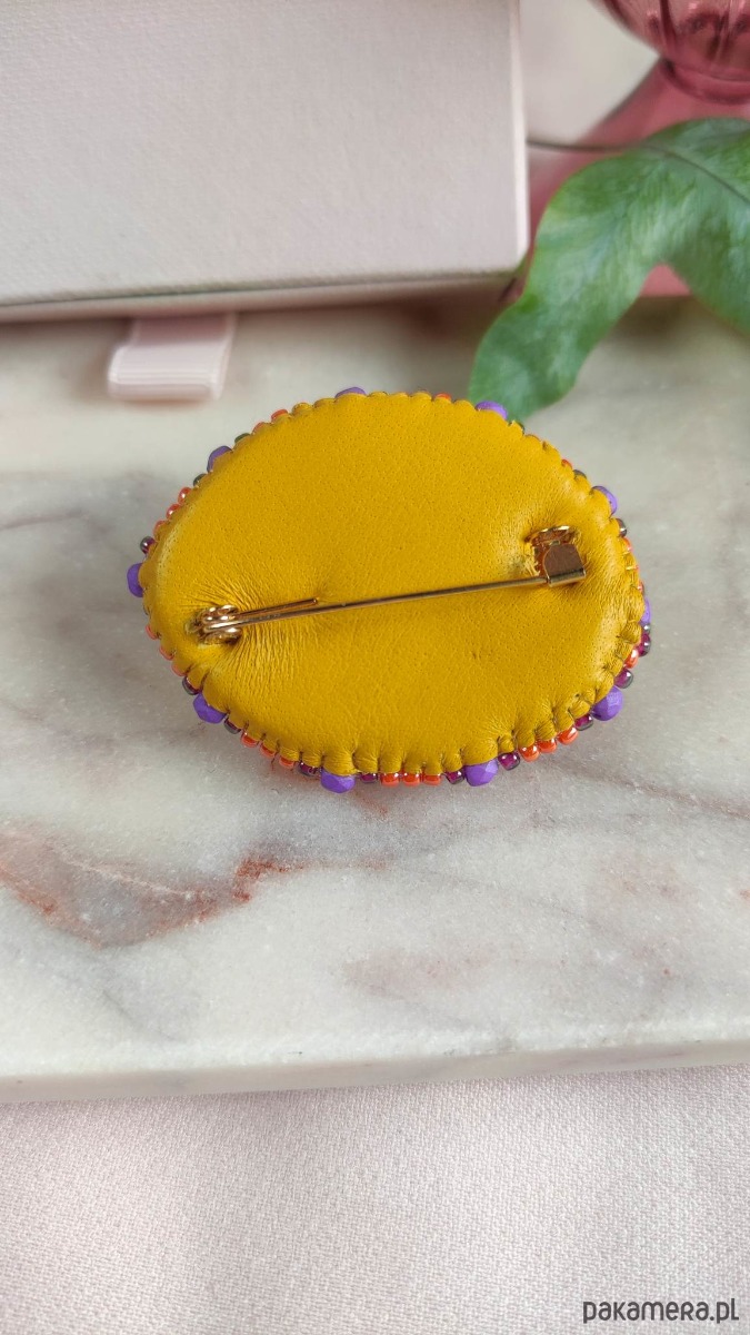 Ta niewielka urocza broszka została stworzona by dodawać energii, poprzez połączenie pomarańczowego, fioletu i czarno-białego deseniu. Ta broszka to także słodycz - słodycz naszej przyjemności :)
