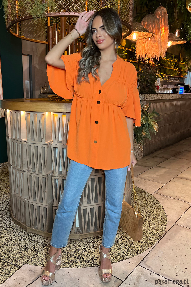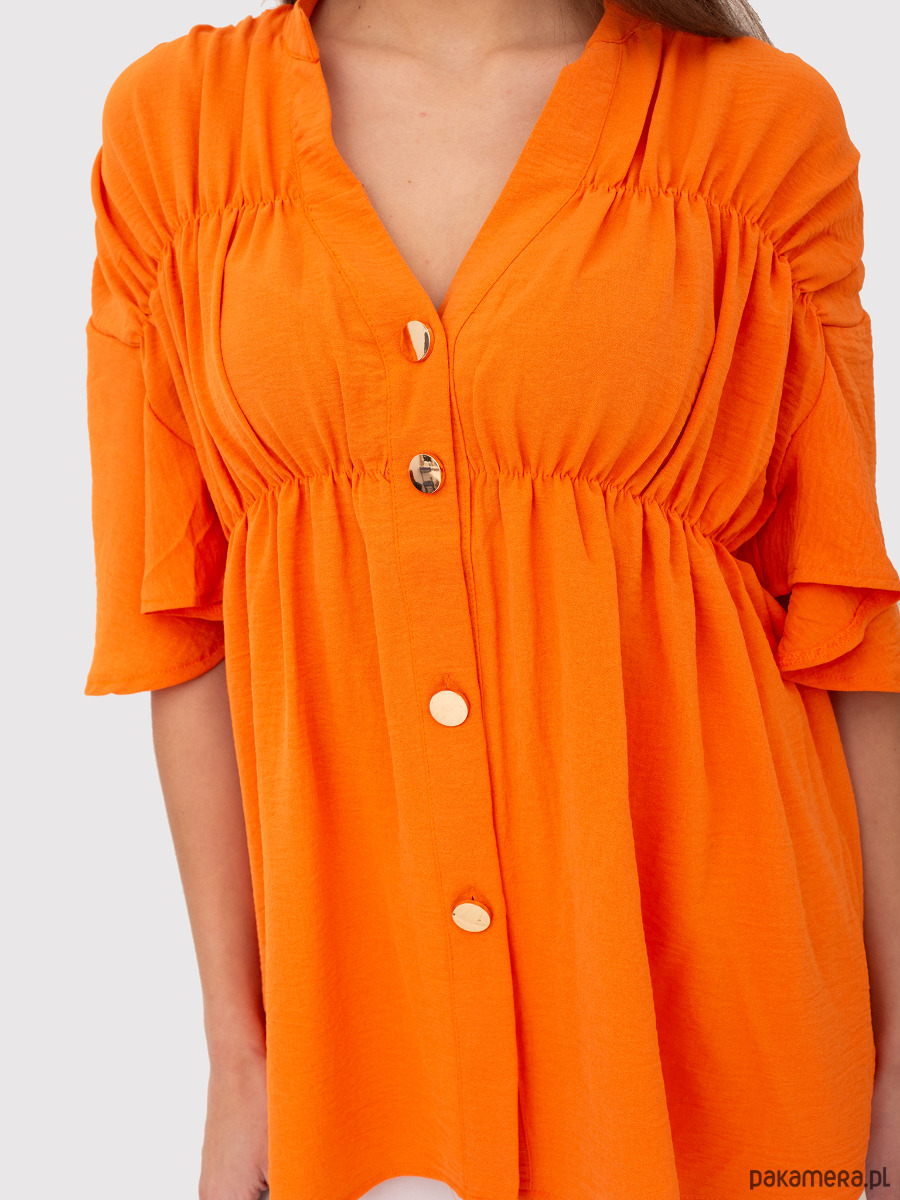 Pomarańczowa koszula z dekoltem w serek zapinana na guziki TA591 ORANGE