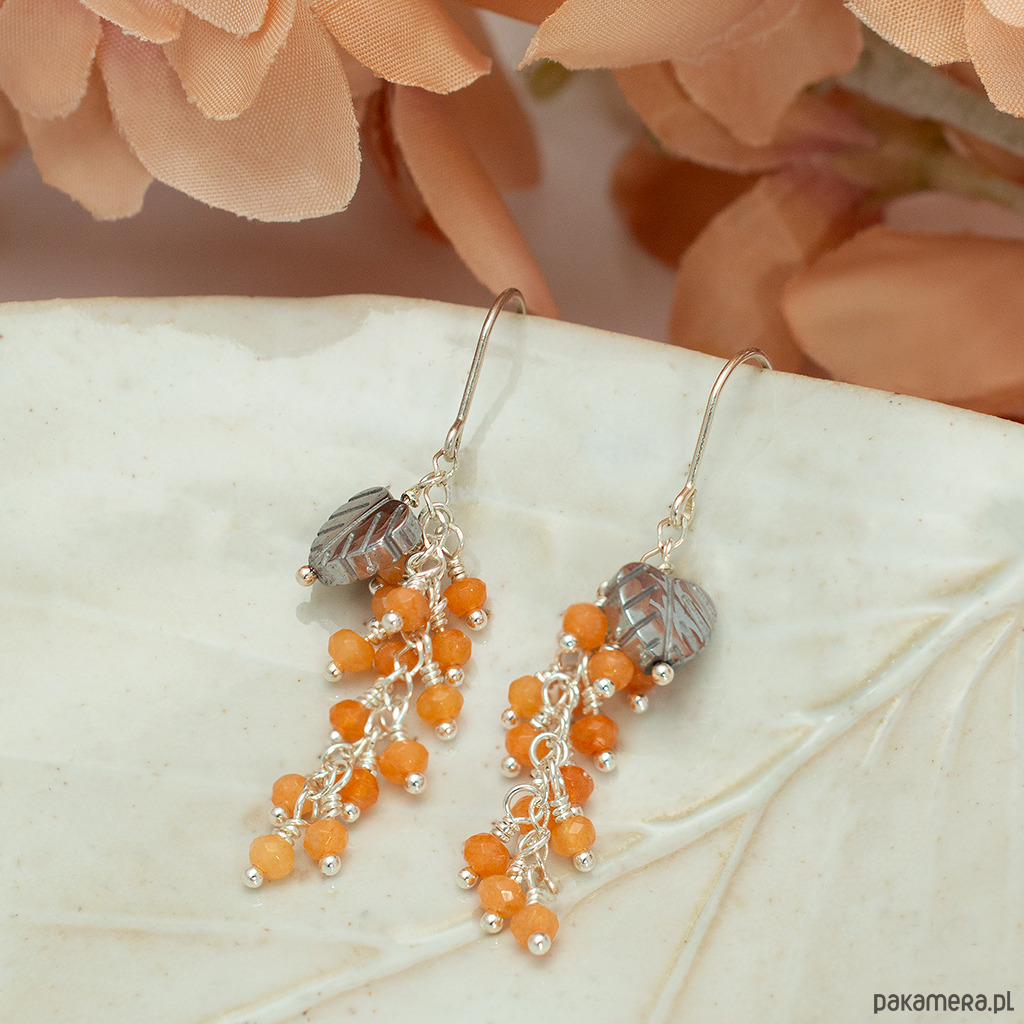 Pomarańczowe kolczyki gronka, srebro 925, jadeit