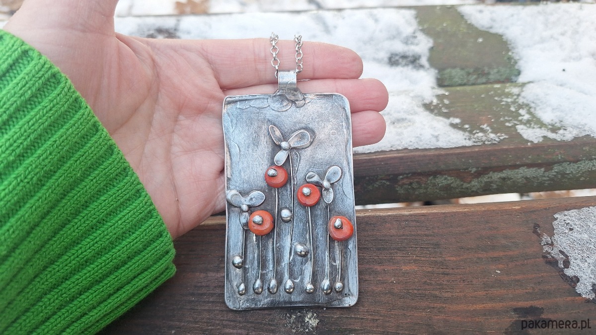 Pomarańczowe maki - wisiorek