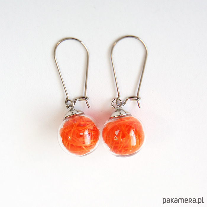 Pomarańczowe pióra - kolczyki wiszące - stal