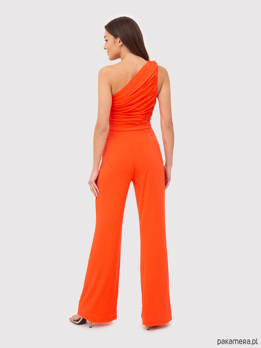 Pomarańczowy kombinezon na jedno ramię z marszczonym topem PA610 BURNT ORANGE