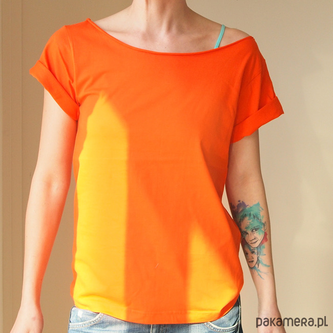 Nonszalancka kobieca luźna koszulka w odcieniu soczystej pomarańczy.