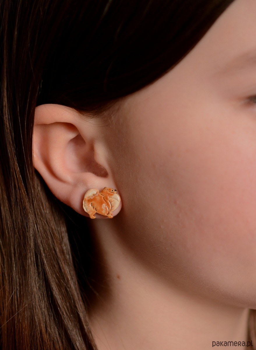 Idealny dodatek dla miłośników tej rasy. Pieski w kolorze rudym mają wymiary: 1,3cm wysokość, 1,5cm szerokość, 2mm grubość. Pieski są malutkie i leciutkie- zdjęcie modelowe przedstawia kolczyki na uchu ośmiolatki. Kolczyki wykonuję od podstaw w mojej pracowni:) Każda para jest inna:)))) Pieski zostały solidnie umocowane na sztyftach ze stali chirurgicznej- antyalergiczna w kolorze oksydowanego srebra. Wysyłam w ozdobnym pudełeczku.